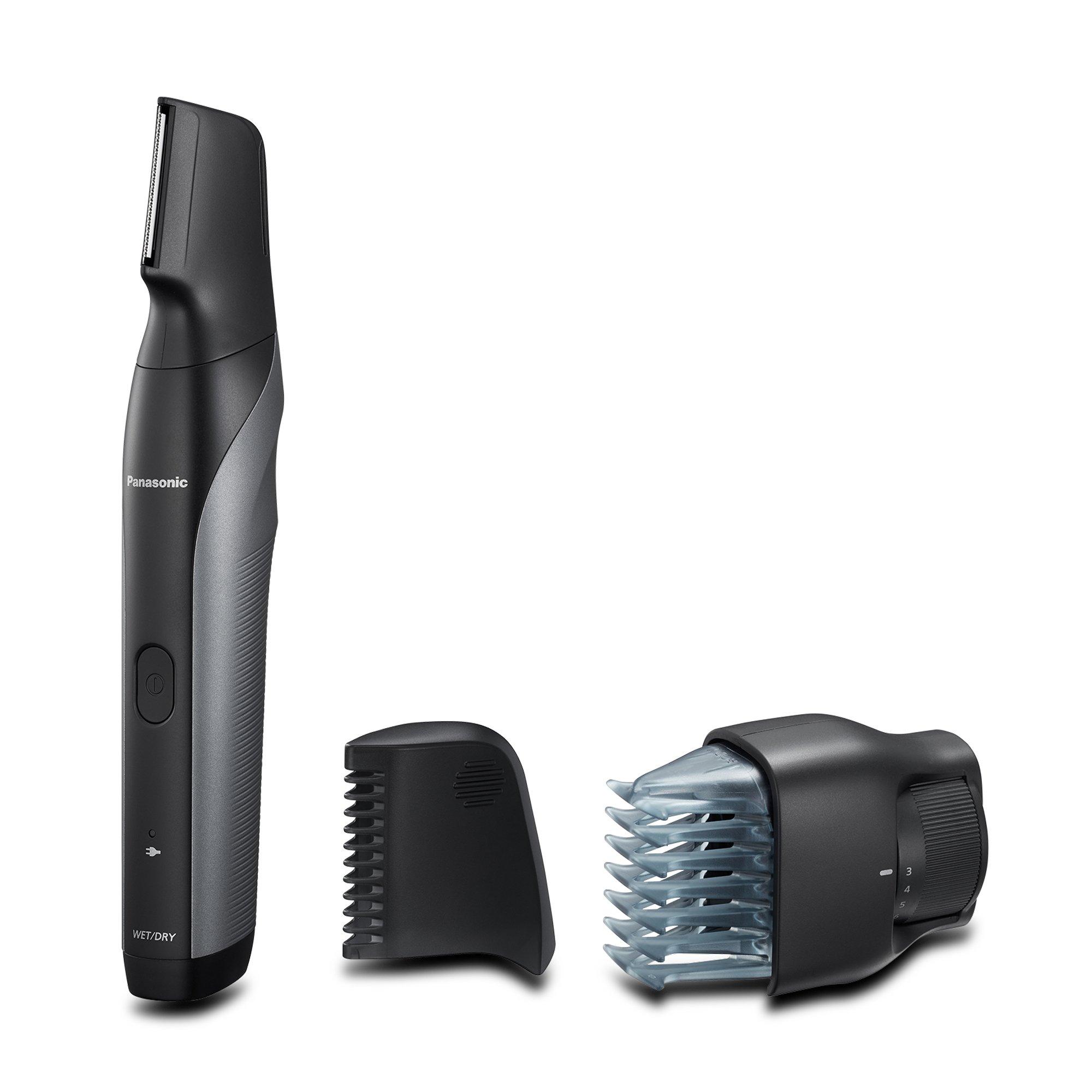 Für sensible Körperpartien geeignet: der Wet/Dry Body-Trimmer von Panasonic. Die ultradünne Klinge rasiert hautnah und gleichzeitig schonend. Durch die einzigartige Form des Gerätes erreichen Sie damit ganz leicht jede Stelle. Zudem lässt sich das Gerät nass und trocken anwenden und braucht nur eine Stunde Ladezeit. Zwei Trimmeraufsätze für Schnittlängen von 3–12 mm sowie von 2mm – für besonders sensible Stellen – werden mitgeliefert.