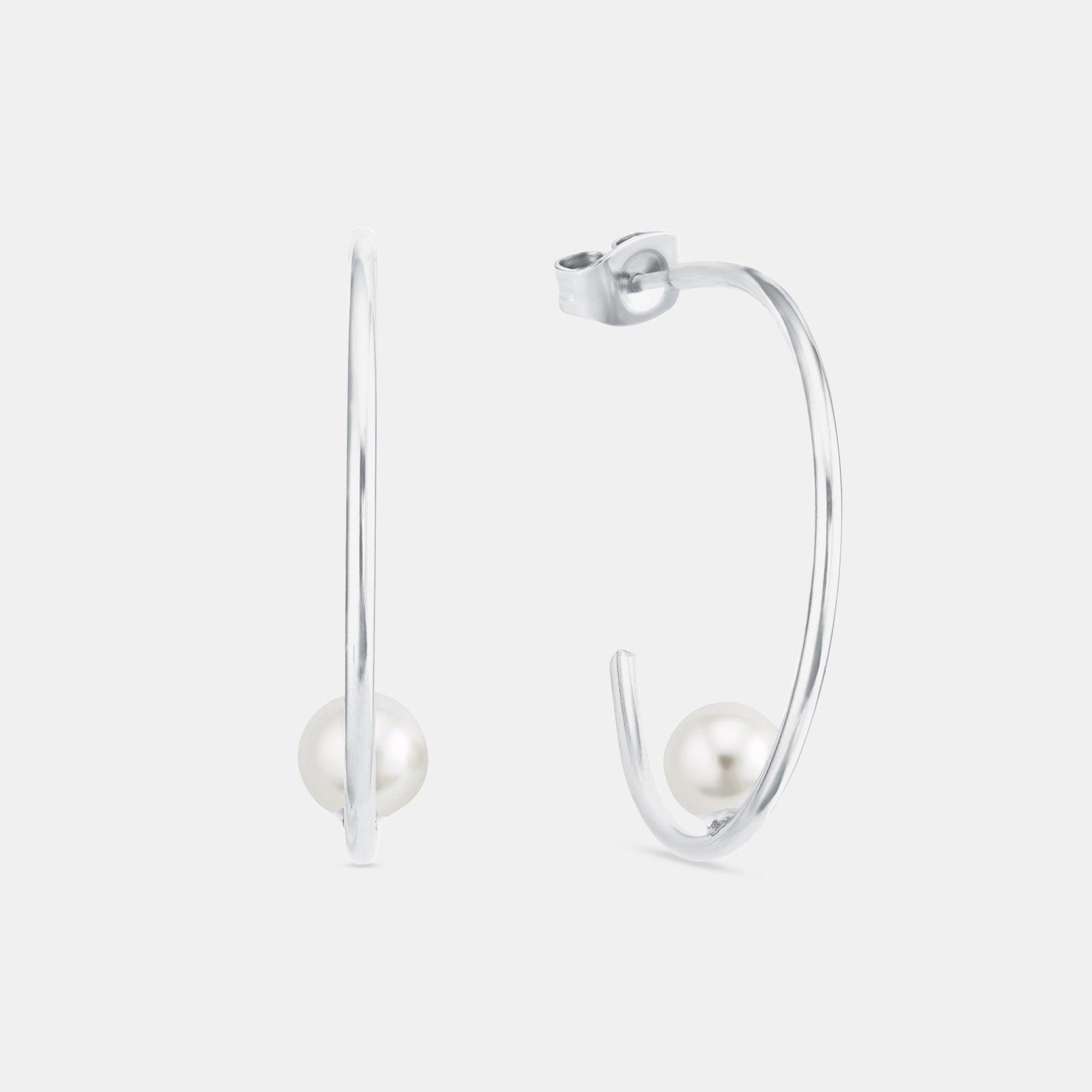 - Wunderschöne amor Damen Creolen aus glänzendem Silber 925 mit zwei weissen Süsswasserzuchtperlen