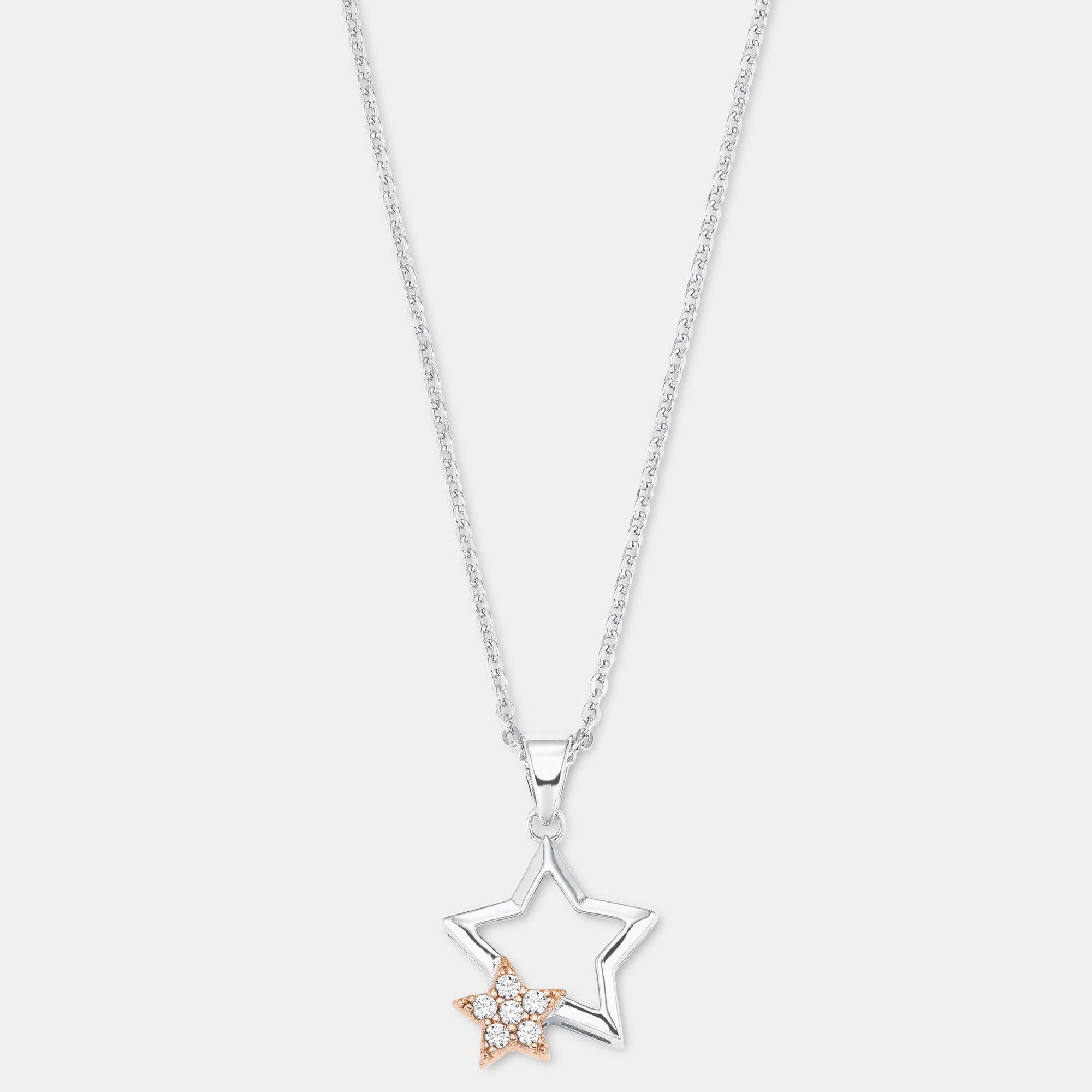- Bicolore Damen Halskette mit doppeltem Stern-Anhänger von amor, hergestellt aus glänzendem 925er Sterling Silber mit einer partiellen Rosévergoldung