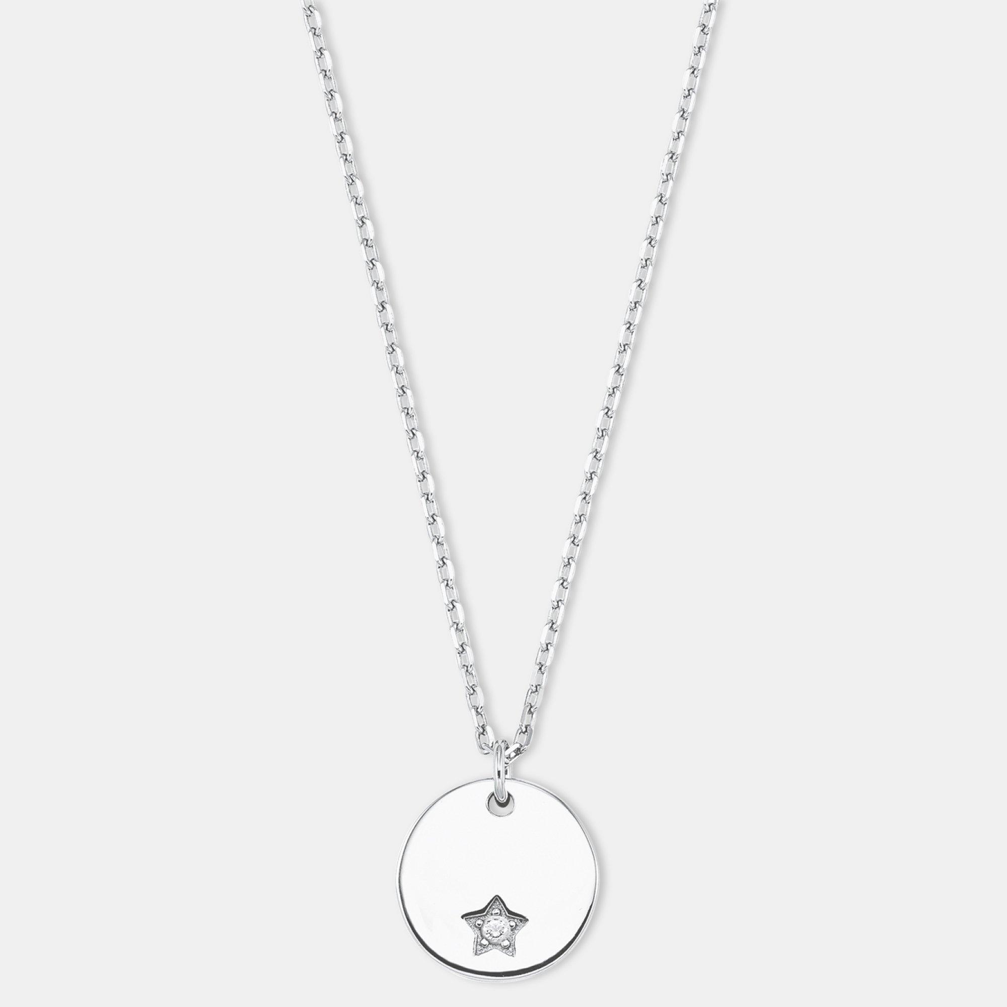 - Die runde Gravurplatte mit Stern und funkelndem Zirkonia für individuelle und ganz persönliche Botschaften (z.B. Name, Initiale, Datum) ist ca. 12 mm x 10 mm gross