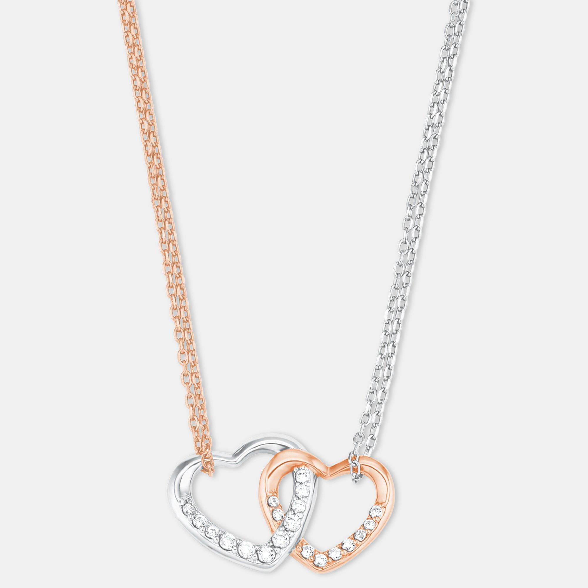 - Bicolore Damen Halskette mit doppelt gefasstem Herz-Anhänger von amor, hergestellt aus glänzendem 925er Sterling Silber mit einer partiellen Rosévergoldung