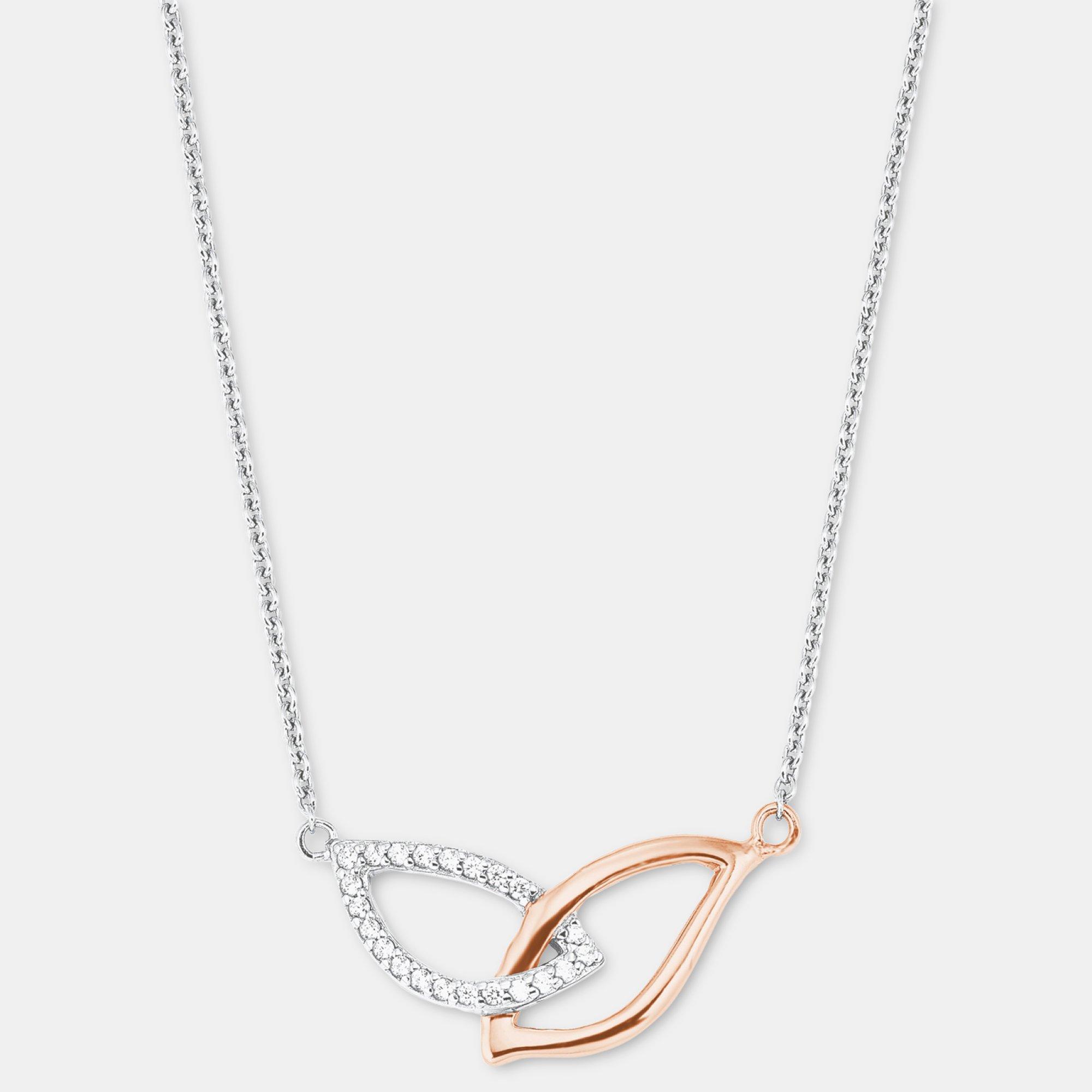 - Bicolore Damen Halskette mit Blatt-Anhänger von amor, hergestellt aus glänzendem 925er Sterling Silber mit einer partiellen Rosévergoldung