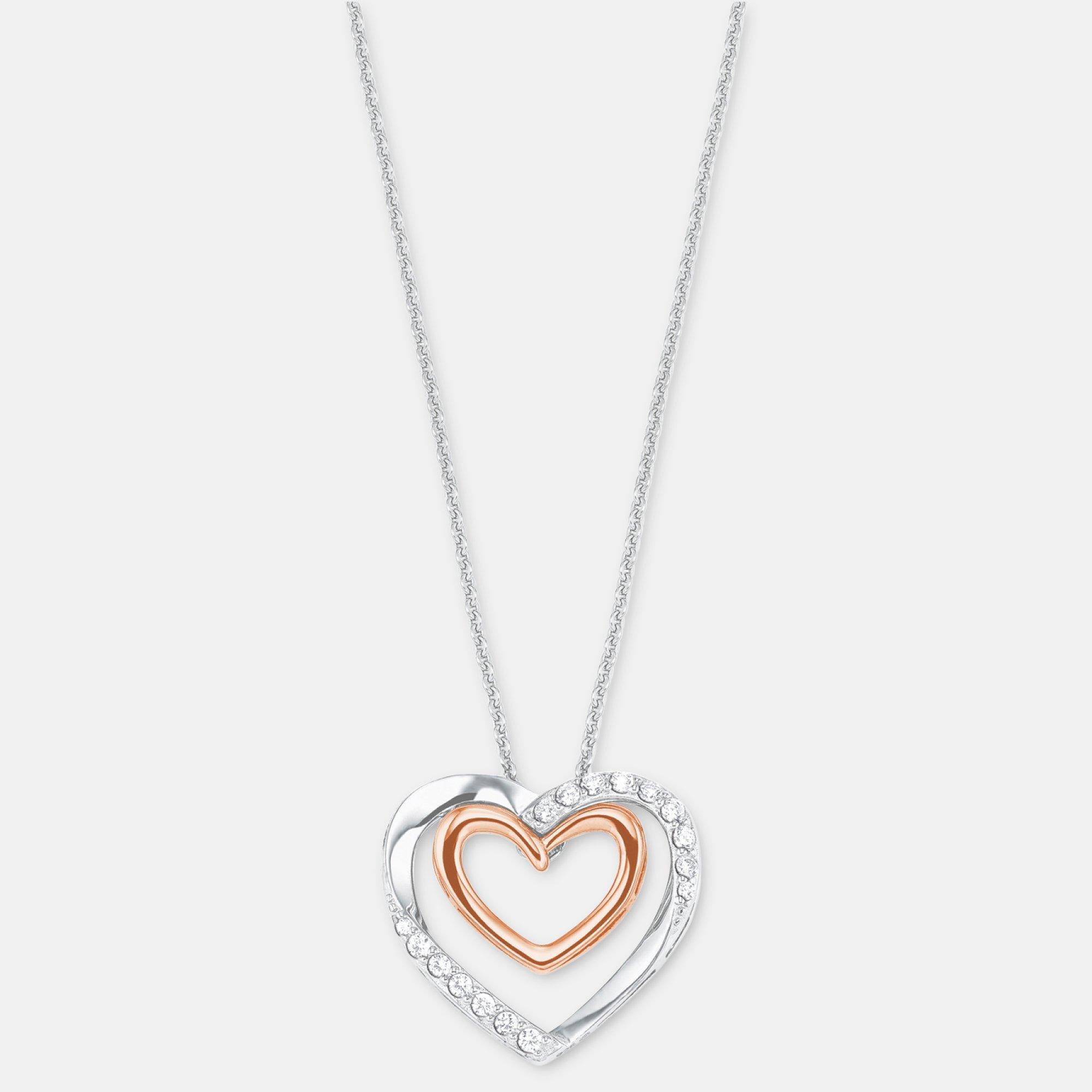 - Bicolore Damen Halskette mit Herz-Anhänger von amor, hergestellt aus glänzendem 925er Sterling Silber mit einer partiellen Rosévergoldung