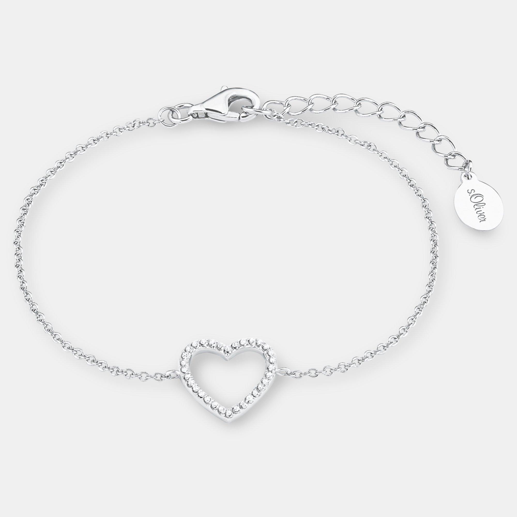 Ein Herz besetzt mit funkelnden Zirkonia (synth.) in reinem Weiss zeichnet dieses filigrane Armband aus der s.Oliver SO PURE Kollektion aus. Gefertigt ist die längenverstellbare (16+3 cm) Armkette aus 925er Sterling Silber und ist zudem mit einer hochwertigen Rhodiumbeschichtung veredelt, welches ein Anlaufen des Schmuckstückes verhindert und einen langanhaltenden Glanz des Silbers garantiert. Als Verschluss dient ein praktischer Karabiner, der einfach in der Handhabung ist.
