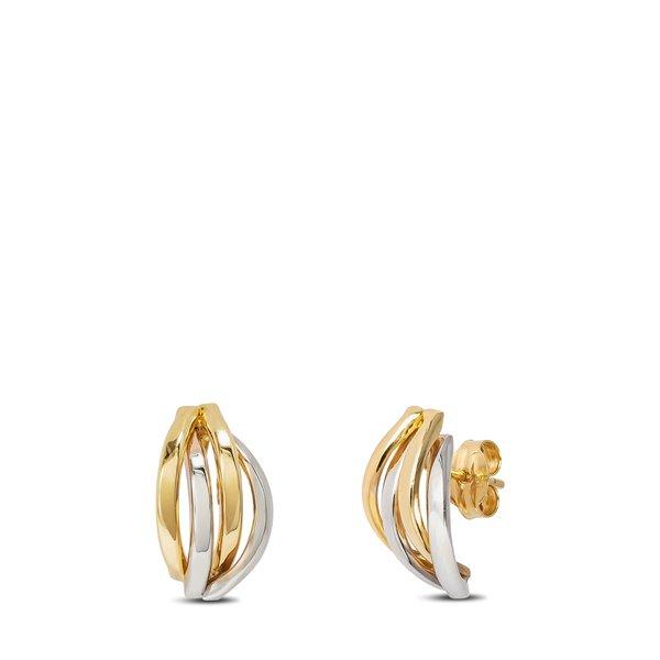Die aufregend designten Ohrstecker der Marke L'Atelier Gold 18 by Manor glänzen in einer verzaubernden Kombination aus goldfarben und silberfarben.