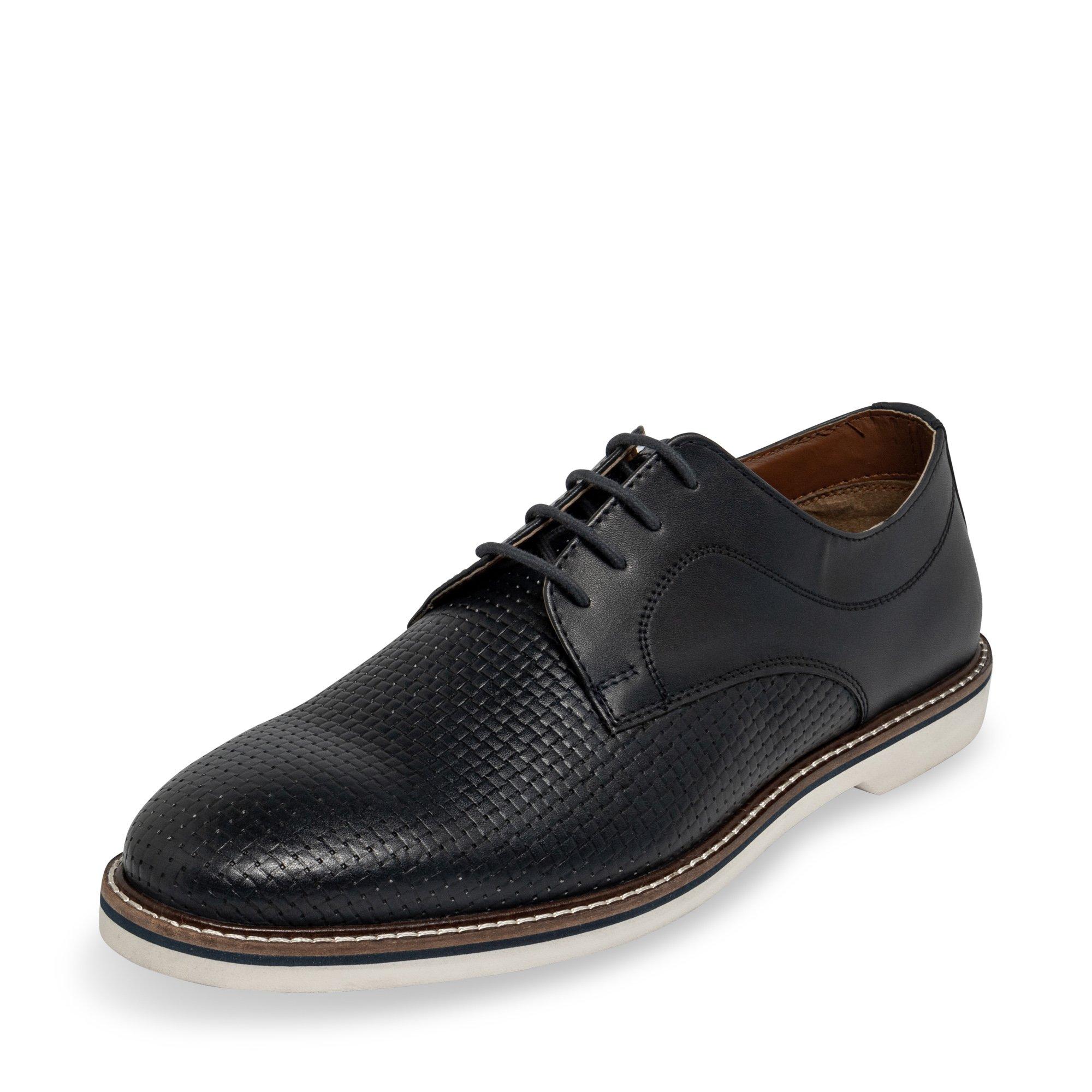 Die sportlich-eleganten Schnürrschuhe von Manor begeitern in der Webeoptik vorne und an der Zunge. Die Gummisohle ist farblich abgesetzt und sticht optisch auch durch die abgesetzte Naht hervor. Der Lederschuh passt zu jedem Anlass und trägt sich stets bequem und lässig.