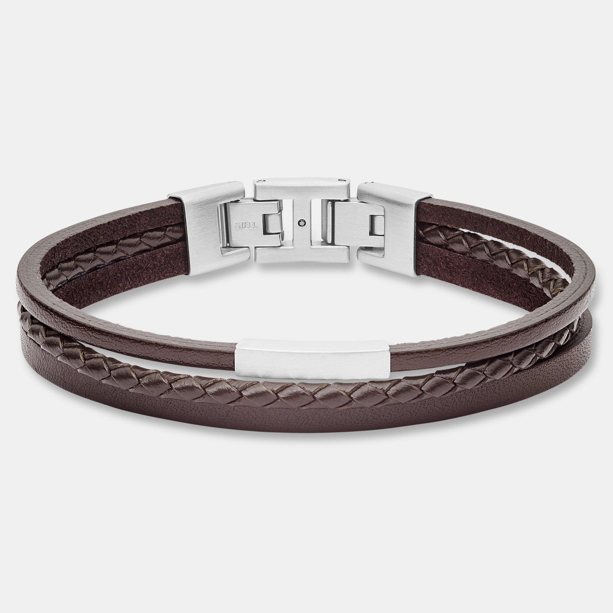 Dieses 3-strängige Lederarmband von Fossil für Herren in braun wird ansprechend von Edelstahlelementen in Silber ergänzt. Der Klappverschluss verleiht dem Accessoire ein stylisches Finish.