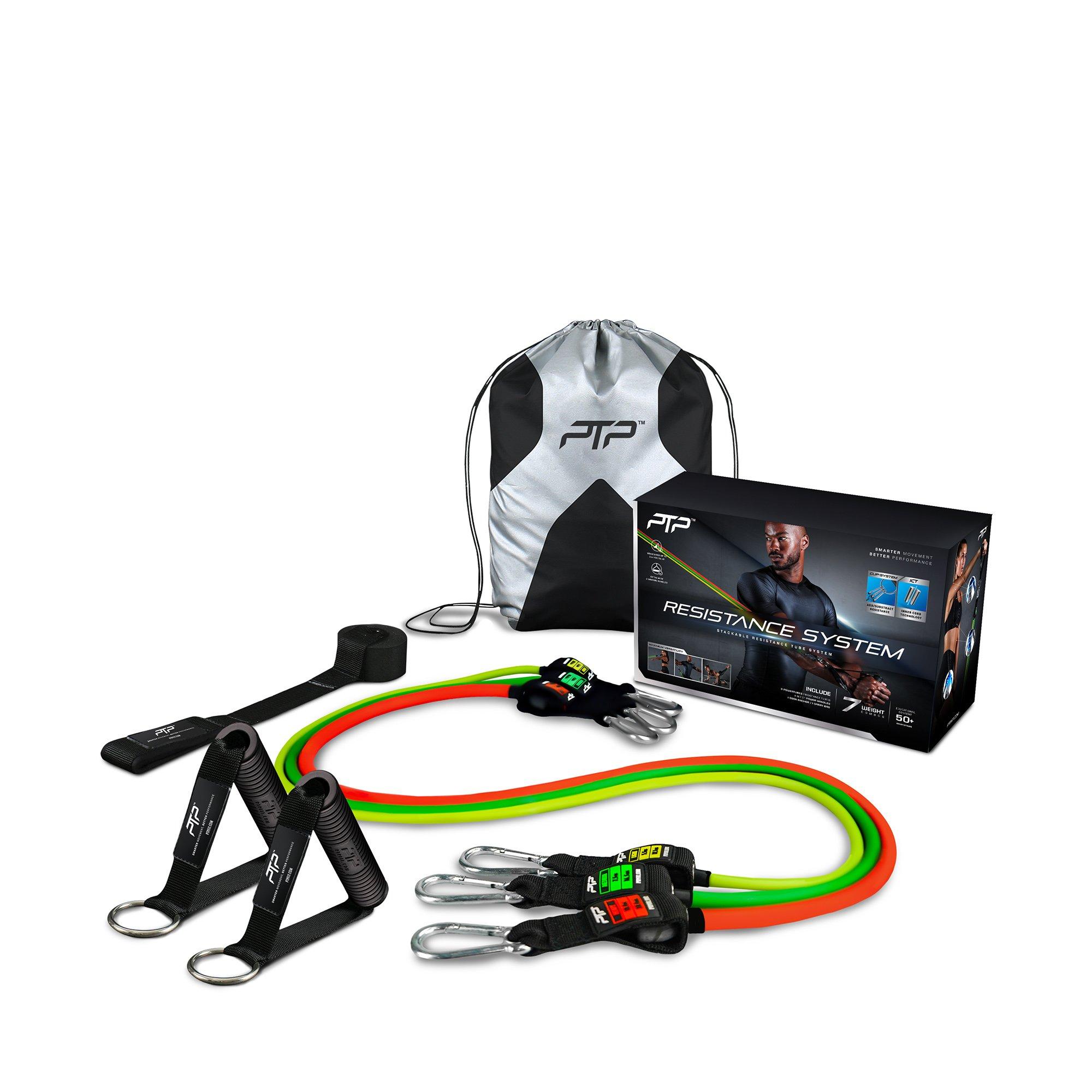 Das vielseitige Fitness-Set der Marke PTP unterstützt bei den Workouts zuhause oder auf Reisen. Das praktische Wiederstandssystem ist leicht, kompakt und eignet sich dank der 3 verschiedenen Widerstandsstufen: 5,5 kg (Limette), 7,5 kg (Grün), 12,4 kg (Orange) für viele Übungen mit unterschiedlicher Intensität. Die Inner Cord Technology verhindert, dass die Schläuche über ihre maximale Dehnungskapazität hinaus gehen. Der kostenlose Online-Video-Zugang und das Poster mit über 50 Übungen helfen das Training abwechslungsreich und individuell zu gestalten.