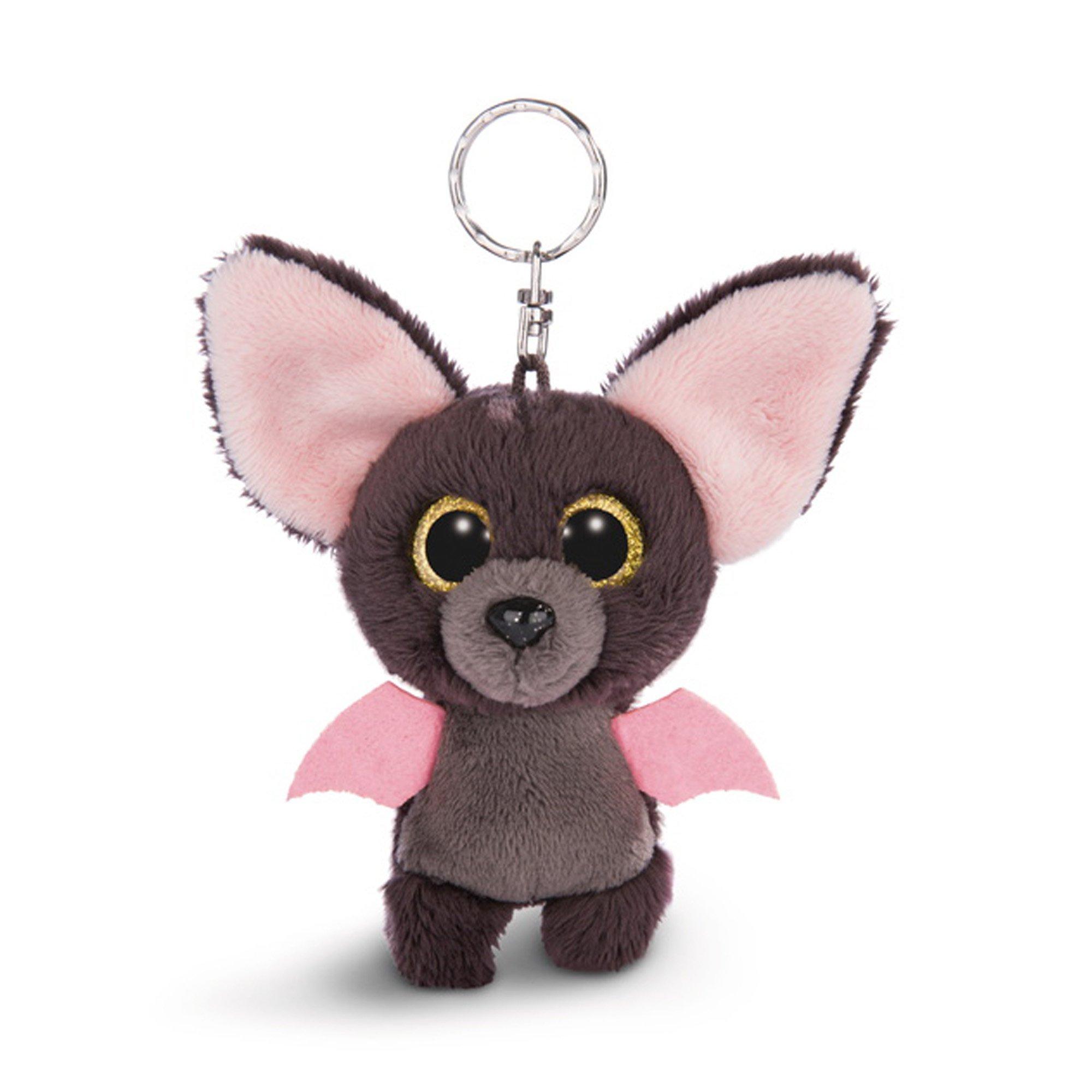 Fledermaus Baako ist ein sogenannter NICI Bean Bag, er hat einen Schlüsselring aus silbernem Metall am Kopf und besticht durch seine putzigen rosa Öhren. Die gold-glitzernden Augen im Kontrast zu dem dunklen Fell machen ihn zu einem knuffigen Highlight.