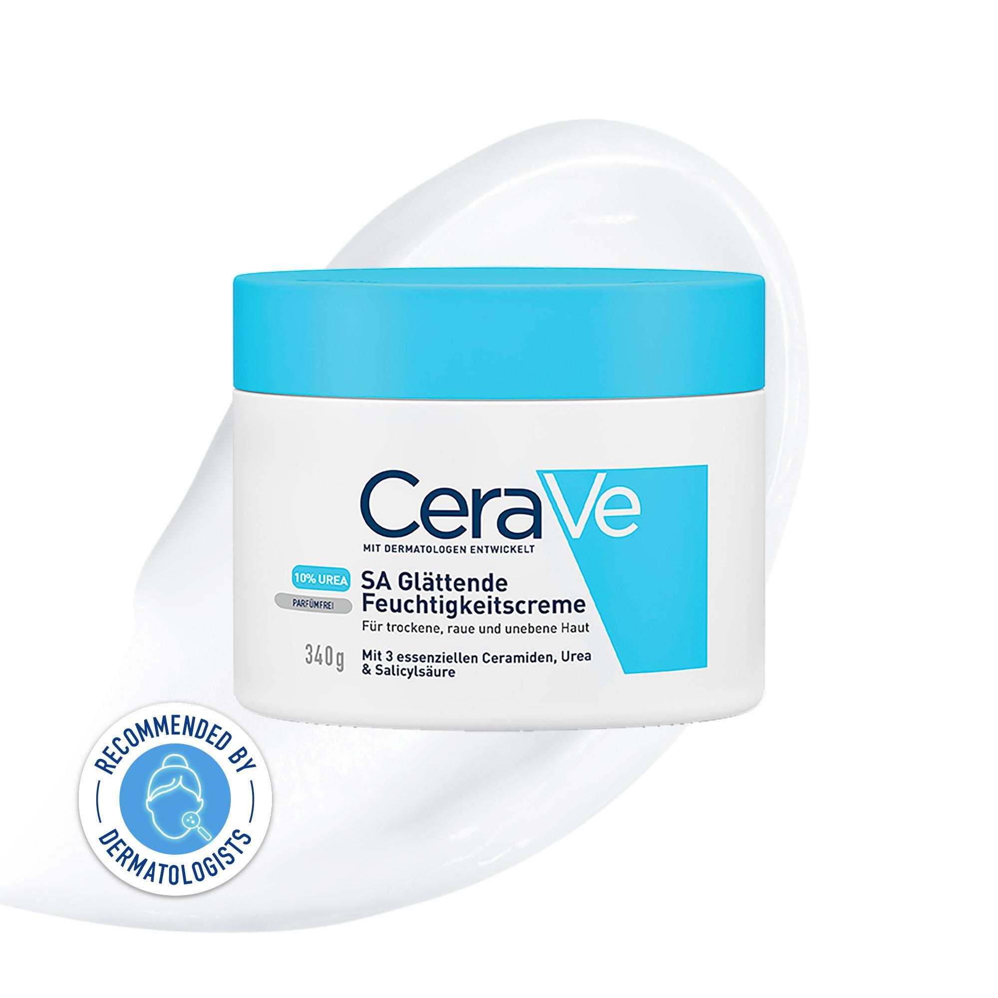 Entdecken Sie die SA Urea Glättende Feuchtigkeitscreme mit 10 % Urea von CeraVe für eine glatte, geschmeidige, mit Feuchtigkeit versorgte, Haut. Mithilfe von Salicylsäure peelt die Creme Ihre Haut und bereitet sie optimal auf die Aufnahme weitere Inhaltsstoffe vor. Durch die abschilfernde Wirkung verbessert die Pflege zudem die Hautstruktur und sorgt für einen ebenmässige Haut. Hochkonzentriertes Urea schenkt Ihnen langanhaltende Feuchtigkeit, indem der Inhaltsstoff tief in die Haut abgegeben wird und dort Wasser speichert. 3 essentielle Ceramide stellen die Hautschutzbarriere wieder her, während Hyaluronsäure zusätzlich Feuchtigkeit spendet. Dank der patentierten MVE-Technologie von CeraVe werden die Wirkstoffe der Feuchtigkeitscreme über einen längeren Zeitraum kontrolliert freigesetzt. Dadurch wird die Haut auch nach dem Auftragen bis zu 24 Stunden gepflegt. Die nicht fettende SA Urea Glättende Feuchtigkeitscreme mit 10 % Urea von CeraVe ist besonders für trockene bis sehr trockene, raue und unebene Haut geeignet. Ideal auch gegen Reibeisenhaut. Die Wirksamkeit der Pflege wurde bei Reibeisenhaut nachgewiesen.