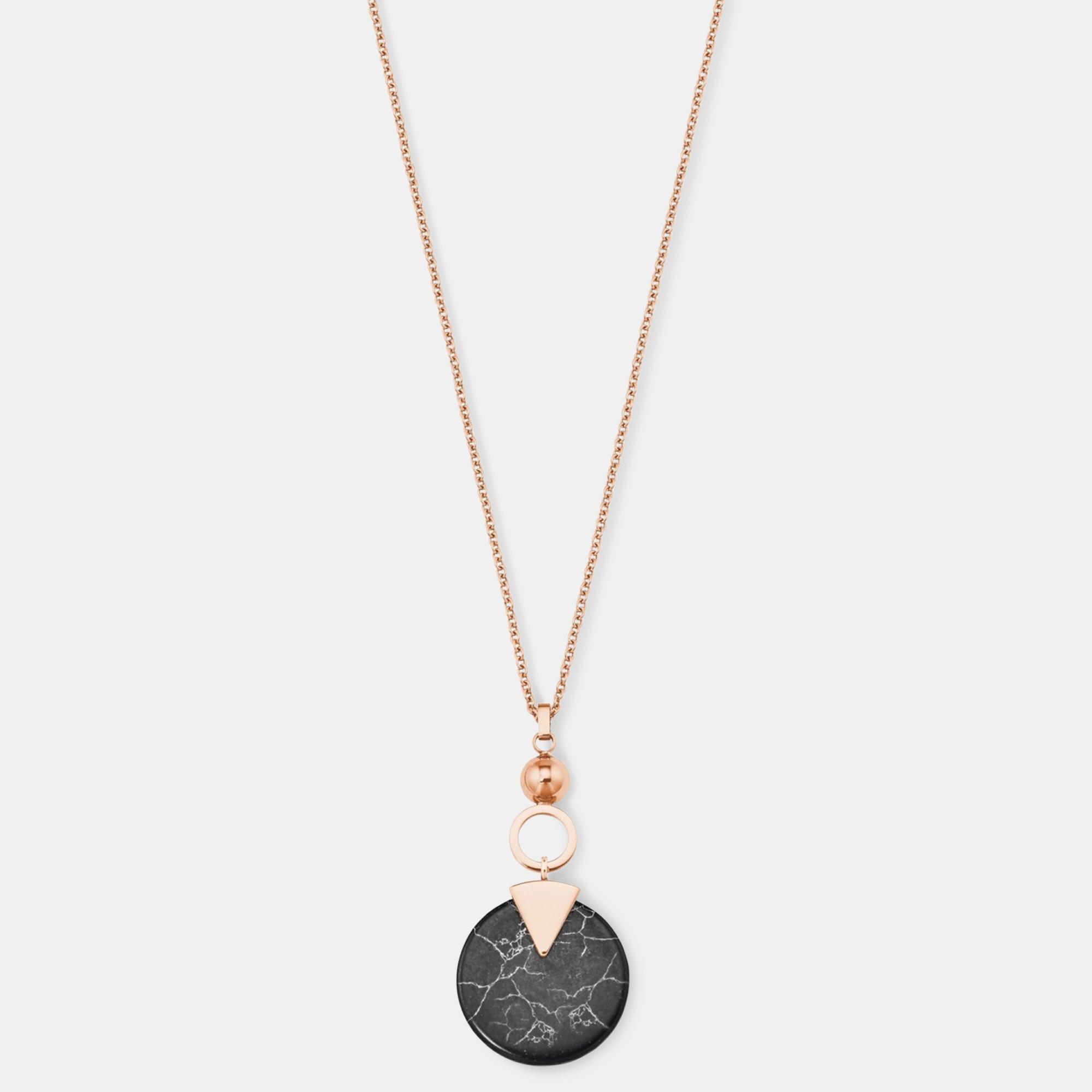 - Statement Halsschmuck hergestellt aus hochwertigem Edelstahl mit warmer IP Rose Beschichtung, verziert mit einem marmorierten Türkisstein
