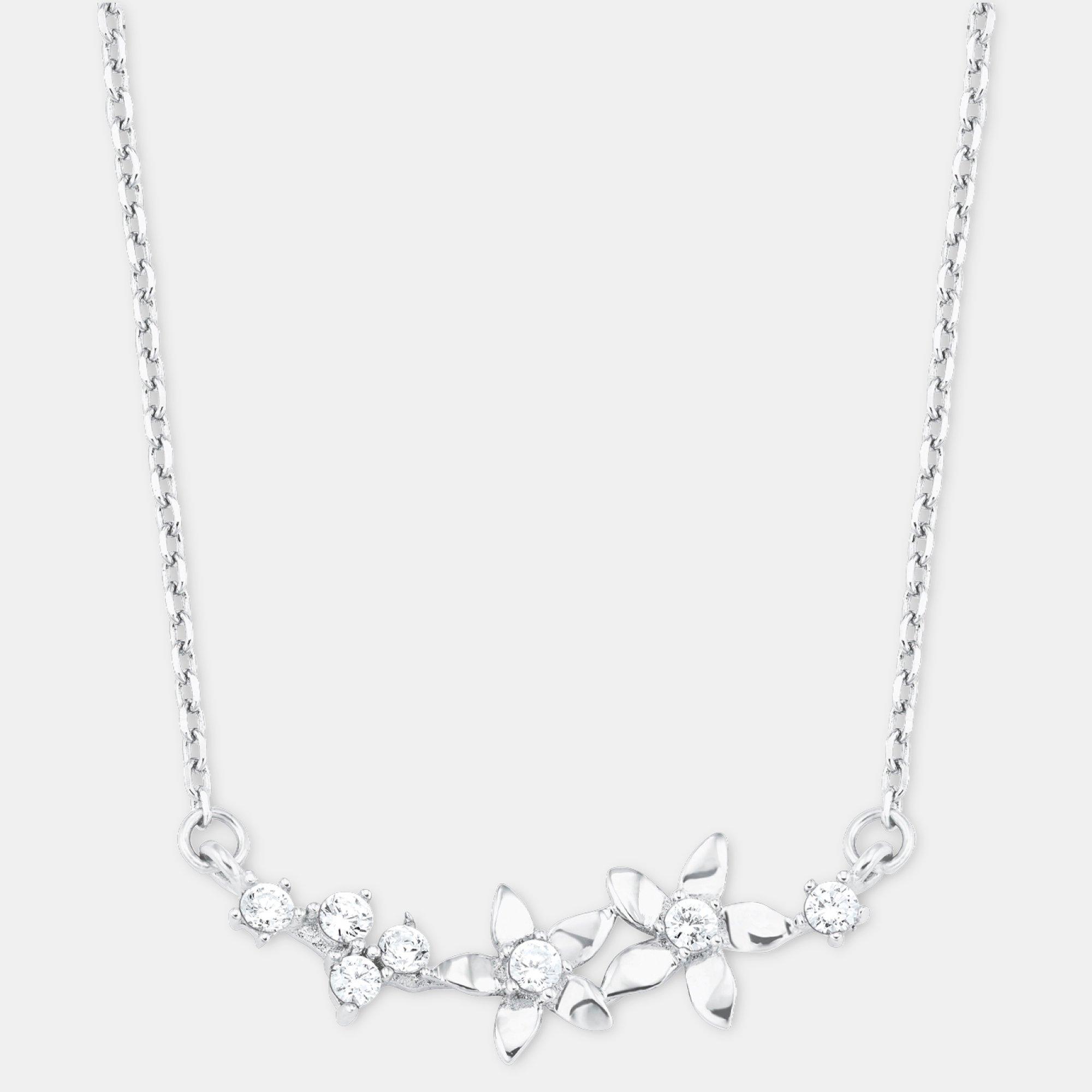 - Natur pur: Funkelnde Damen Kette mit trendigem Blüten-Design und weissen Zirkonia