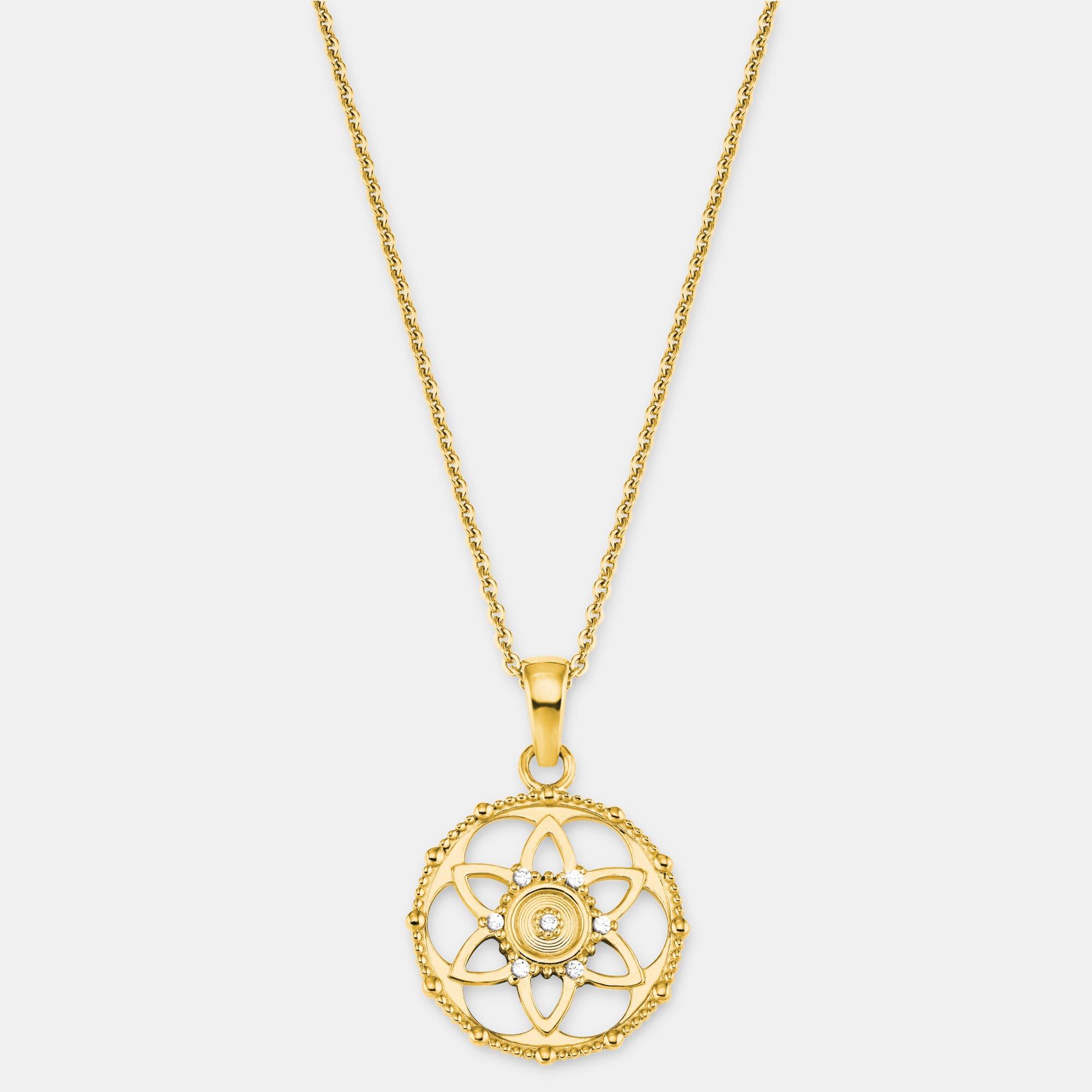 - Wunderschöne Damen Kette mit rundem Blüten-Amulett