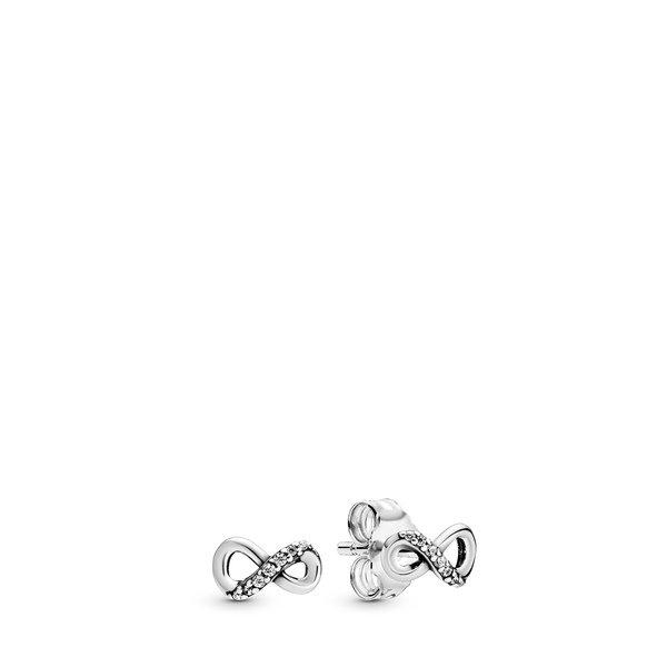 Das Unendlichkeitssymbol in diesen funkelnden Ohrringen ist das ultimative Symbol für ewige Liebe. Durch das geschwungene Design ist der Ohrring in der Mitte höher und hat einen auffälligen dreidimensionalen Look. Dieses Schmuckstück ist aus Pandora Rose, unserer rosévergoldeten Metalllegierung, veredelt und hat ein glänzendes Finish durch acht Mikro-Cubic Zirkonia und sechs runden klaren Cubic Zirkonia in Körnerfassung. Das subtile Design und die zarte Form mit ihrem tieferen Detail machen es besonders attraktiv.