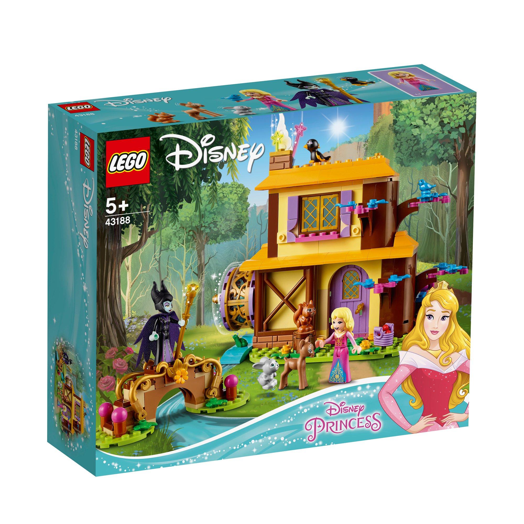 Das bezaubernde LEGO® ǀ Disney Set „Auroras Hütte im Wald“ (43188) ermöglicht es jungen Fans der Disney Prinzessinnen fantasievolle Abenteuer nachzuspielen. Dieses ansprechende Bauset enthält eine Hütte mit einem drehbarem Wasserrad, eine Brücke im Wald als separates Baumodell sowie diverse Zubehörelemente, die zum Spielen anregen. Faszinierende Spielmöglichkeiten Die detailreiche Hütte inspiriert mit zwei Räumen - einer Küche mit Eingangstür, Tisch und Kamin sowie dem Schlafzimmer im Obergeschoss – zu unzähligen kreativen Spielabenteuern. Das Wasserrad an der Seite dreht sich und bewegt die magischen Funken im Schornstein und die kleine baubare Brücke bietet noch weitere Spieloptionen. Spannende Geschichten mit heiß und innig geliebten Figuren Dieses tolle Set enthält die Disney Heldinnen Aurora und Malefiz als Spielfiguren sowie Diablo, ein Kitz, ein Häschen, ein Eichhörnchen und einen Hüttensänger als LEGO® Disney Tierfiguren, damit Kinder sofort damit spielen können. Die verschiedenen Modelle und Elemente in dem Set wecken die Fantasie der Kinder und inspirieren sie zu Rollenspielen, bei denen sie ihre Lieblingsszenen aus dem Film „Dornröschen“ nachstellen oder sich neue Geschichten ausdenken können.
