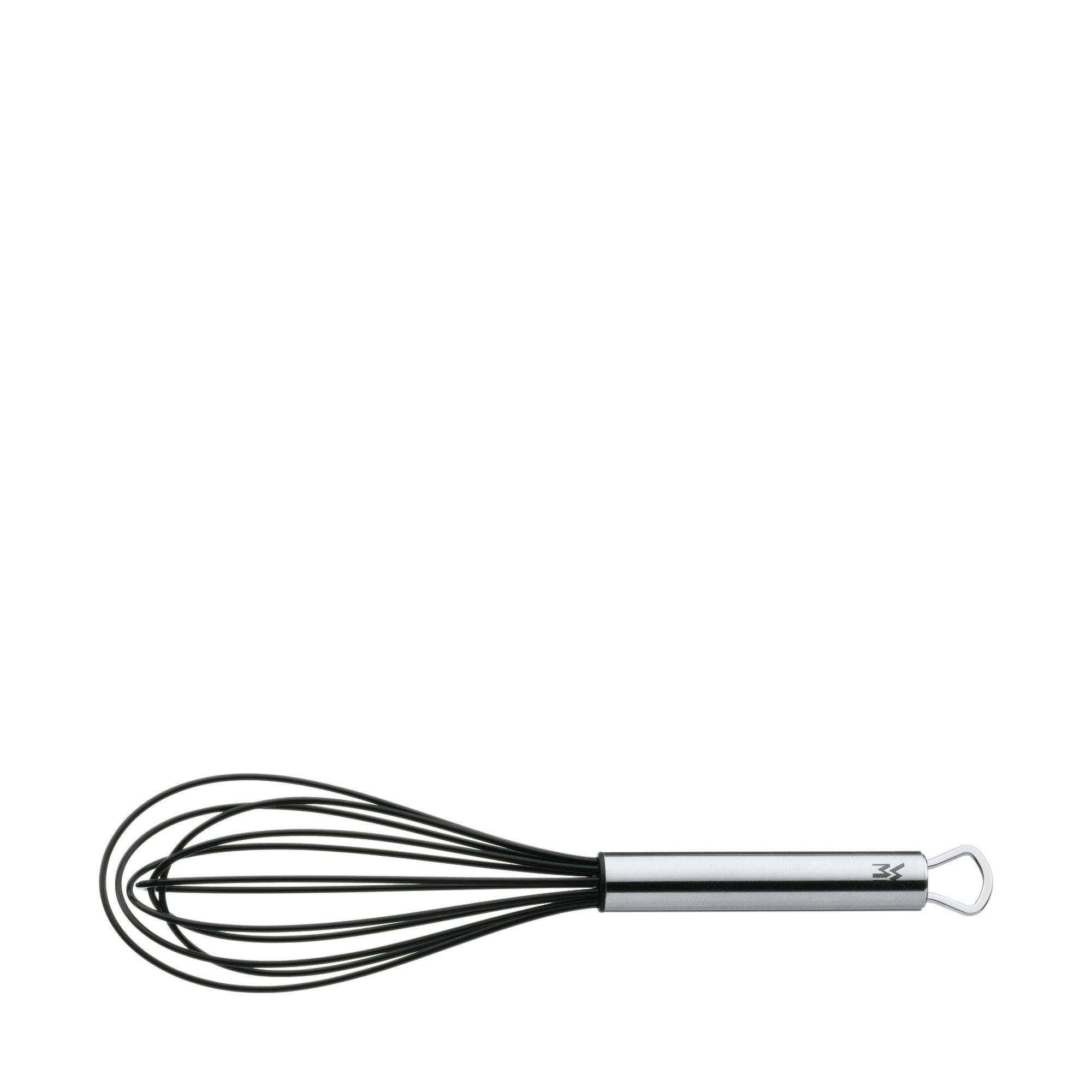 Der Profi Plus Schneebesen von WMF ist unverzichtbar in der Küche und ermöglicht das schnelle Verrühren von Zutaten für Cremes, Marinaden und Saucen, sowie das schaumige Aufschlagen von Eiern und Sahne. Hergestellt aus strapazierfähigem Cromargan® Edelstahl Rostfrei 18/10 und hitzebeständigem Silikon bis 200 °C, ist der Schneebesen ideal für antihaftversiegeltes Kochgeschirr und spülmaschinengeeignet, und erfüllt höchste Ansprüche an Funktionalität und Qualität wie alle Küchenhelfer der Serie Profi Plus von WMF.
