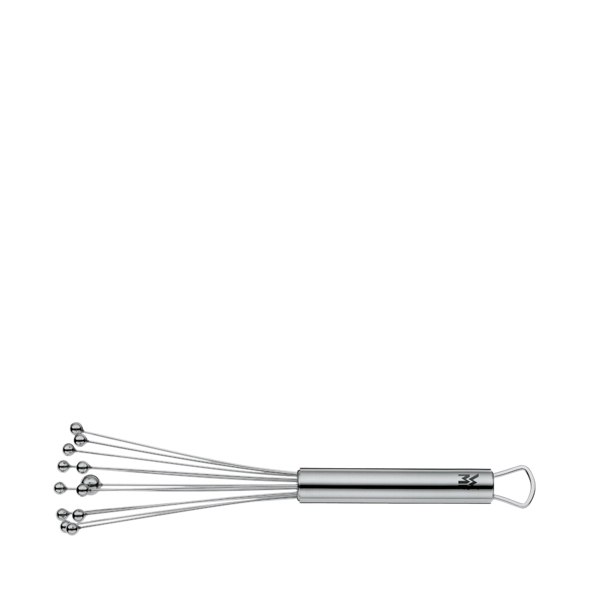 Der innovative Profi Plus Rührblitz von WMF rührt Saucen, Marinaden, Dressings und Sahne in Sekundenschnelle dank hochflexibler Drähte mit kleinen Kugeln am Ende, die ein Anhaften der Zutaten verhindern und mühelos jeden Bereich des Topfes oder der Rührschüssel erreichen. Gefertigt aus strapazierfähigem Cromargan® Edelstahl Rostfrei, ist der 21 cm lange Rührblitz robust, langlebig und spülmaschinengeeignet, und erfüllt höchste Ansprüche an Funktionalität und Qualität, wie alle Küchenhelfer der Serie Profi Plus von WMF.