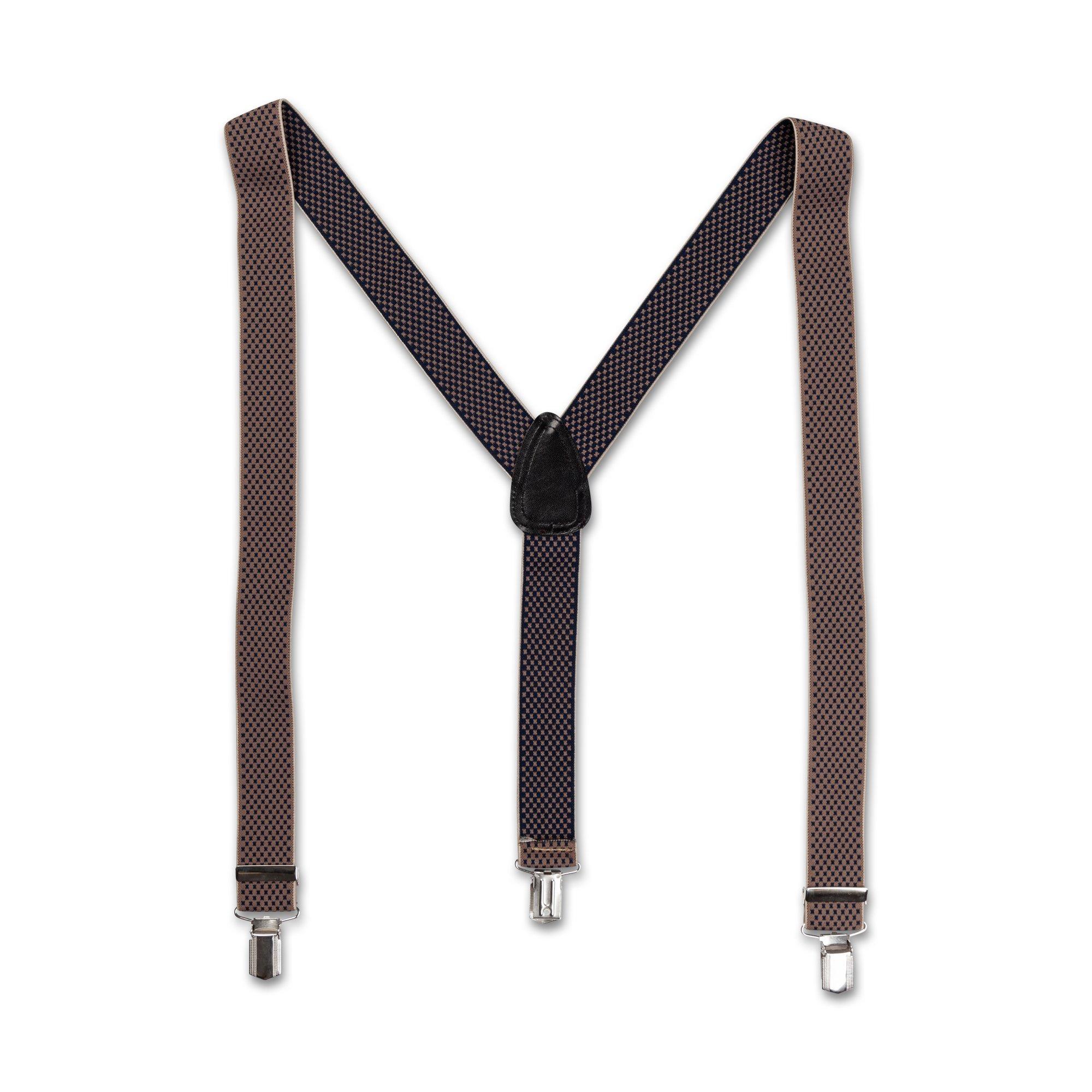 Diese Hosenträger verfügen über ein klassisches Y-Rücken-Design, das einen sicheren und bequemen Sitz bietet. Die Träger sind mit einem dezenten Allover-Muster verziert, das jedem Outfit einen Hauch von Raffinesse verleiht. Sie sind mit stabilen Metallclips zur einfachen Befestigung an der Hose ausgestattet.