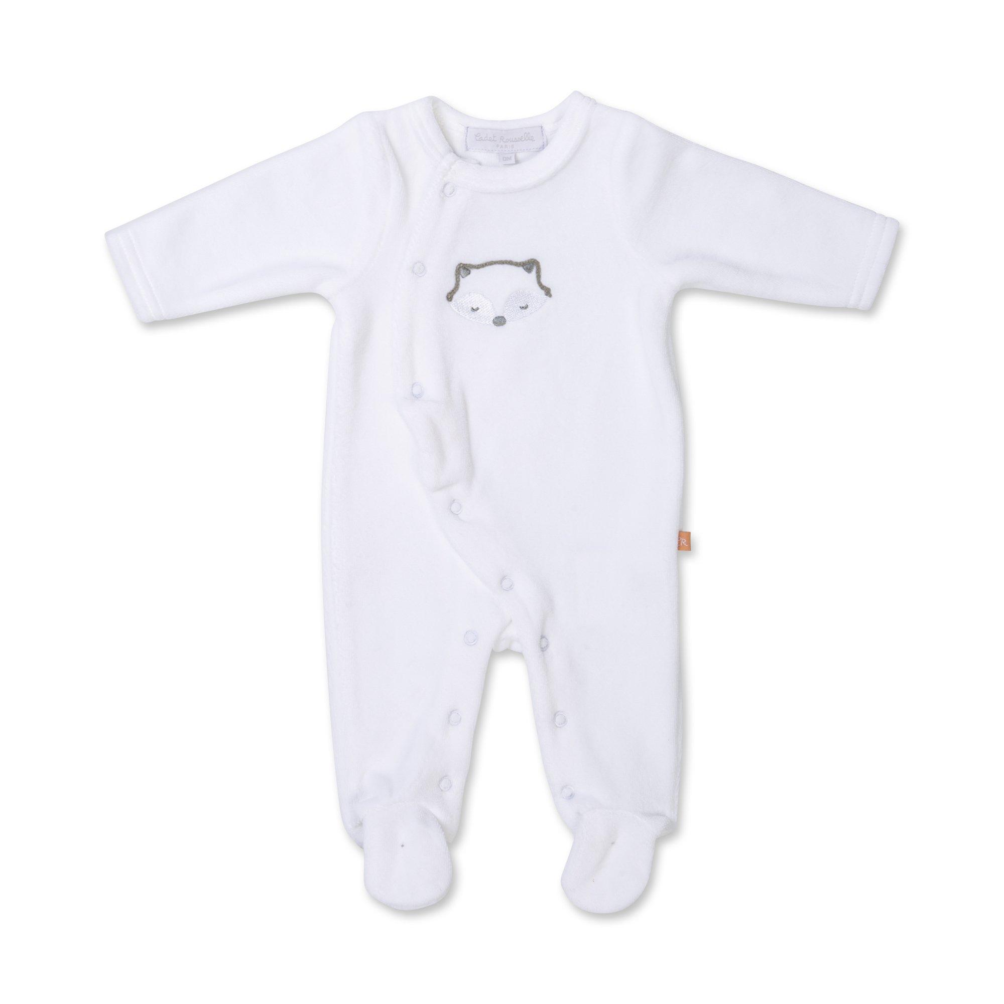 Warmer und kuschelig weicher Pyjama aus biologischer Baumwolle von Cadet Rousselle. Mit Druckknöpfen kann dieser Schlafanzug mit Füsschen von Kopf bis Fuss auf- und zugeknöpft werden. Die 3/4 Ärmel und die Stickerei auf der Vorderseite sind ausserdem tolle optische Spielereien.