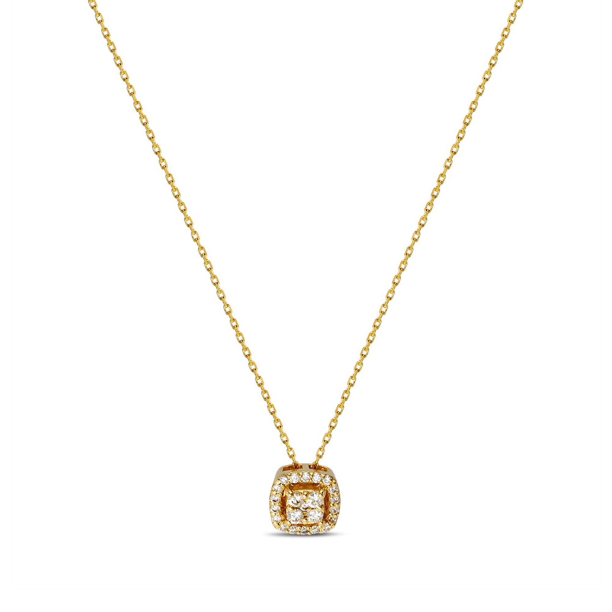Elegante Halskette von der Marke Sergio Ferris aus 18-karätigem Gelbgold. Der strahlende Anhänger wird von 24 Brillianten (0.11 ct) geziert.