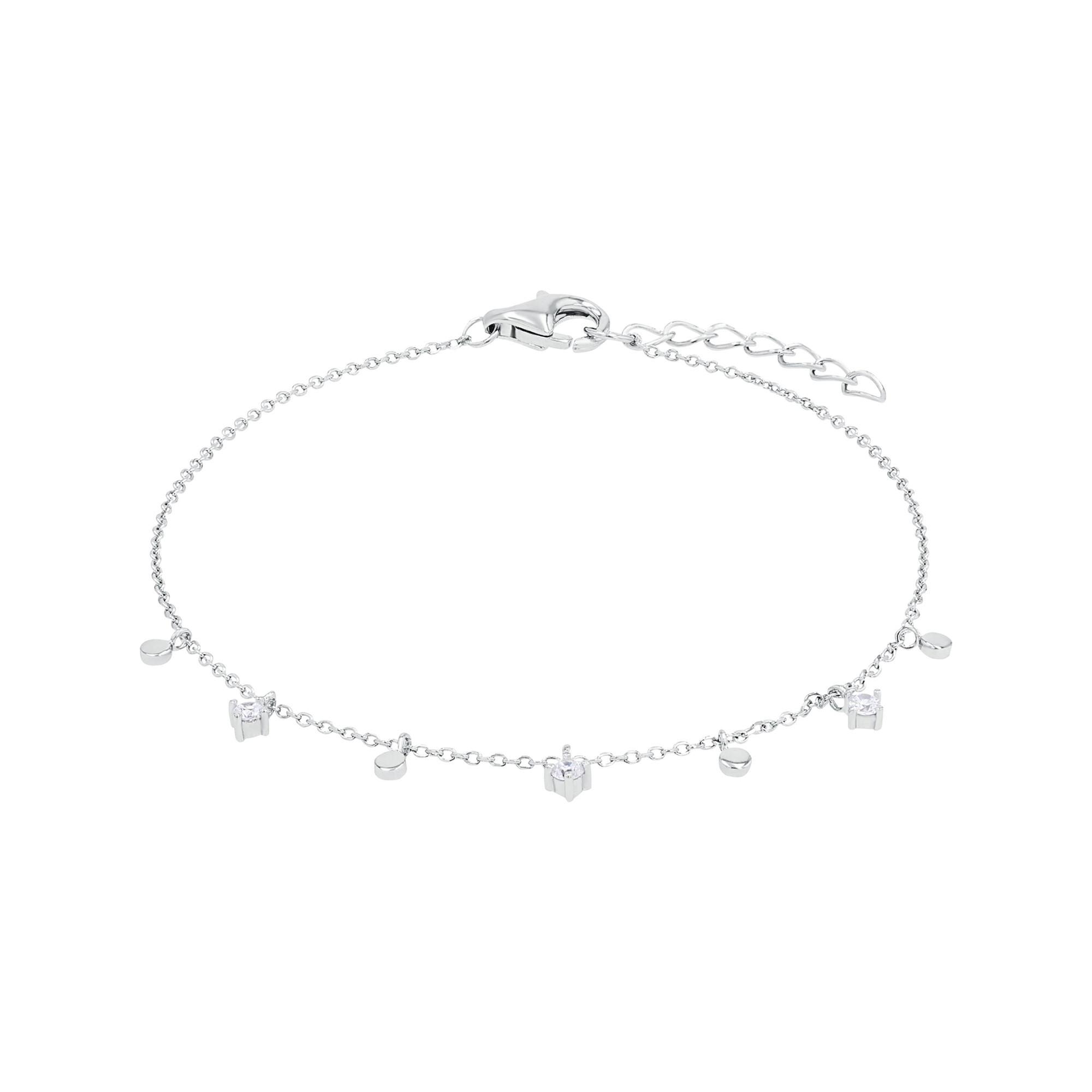 Dieses zierliche Armband der Marke Amor ist aus hochwertigem 925er Sterling Silber gefertigt und mit einer Rhodiumschicht ummantelt für langanhaltende Qualität. Das Schmuckstück besteht aus einer zarten Anker-Kette welche mit zahlreichen Anhängern aus Silberplättchen sowie funkelnden Zirkonia-Steinen versehen ist.