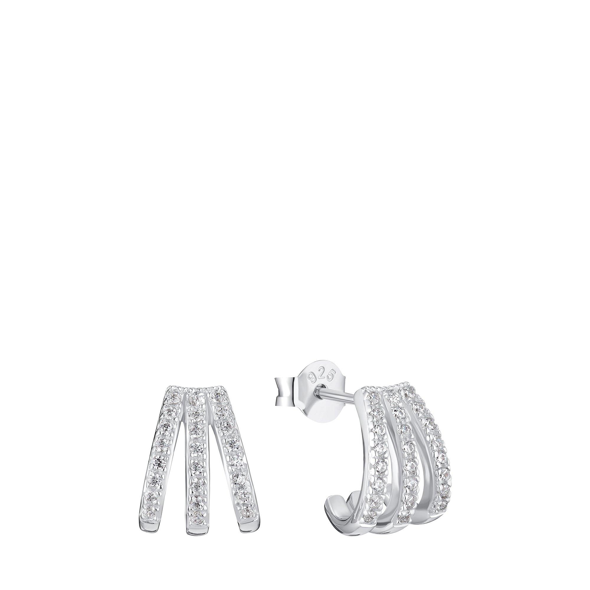 Elegant, glitzernd, zeitlos. Diese Ohrstecker der Marke Amor bestechen durch ihr einzigartiges Design. Sie bestehen aus 3 silbernen Strängen, welche mit funkelnden Zirkonia-Steinen veredelt sind und sich mit einer Kurvung elegant um das Ohr legen.