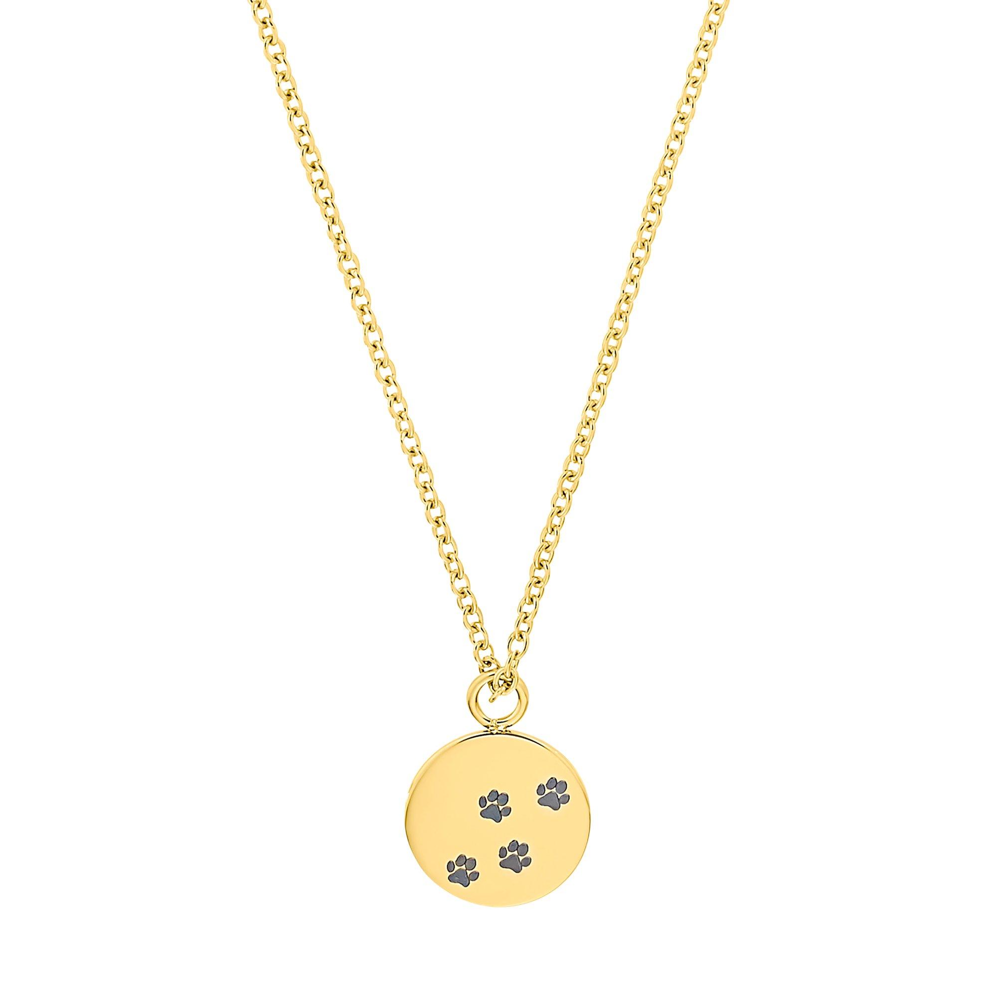 Ein Must-Have für Tierliebhaberinnen: Diese süsse Kette der Marke Amor ist aus hochwertigem Stainless Steel mit IP Gold gefertigt. Der Anhänger besteht aus einer runden Gravurplatte, welche mit 4 zierlichen Pfotenabdrücken daherkommt.