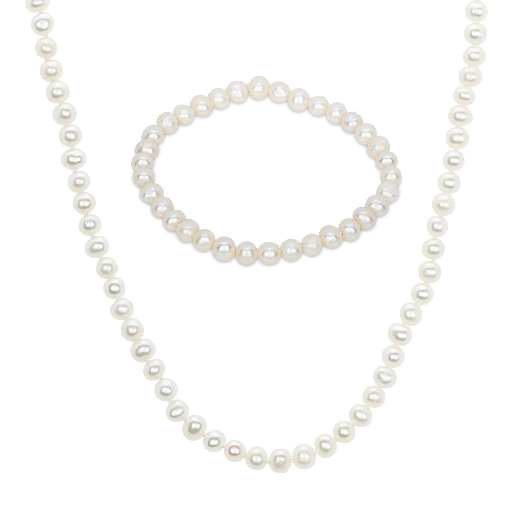 Das wunderschöne Perlen-Schmuckset von Puro ist aus einer Vielzahl an wundervoll schimmernden Süsswasserperlen gefertigt und besteht aus einer Halskette und einem Armband.