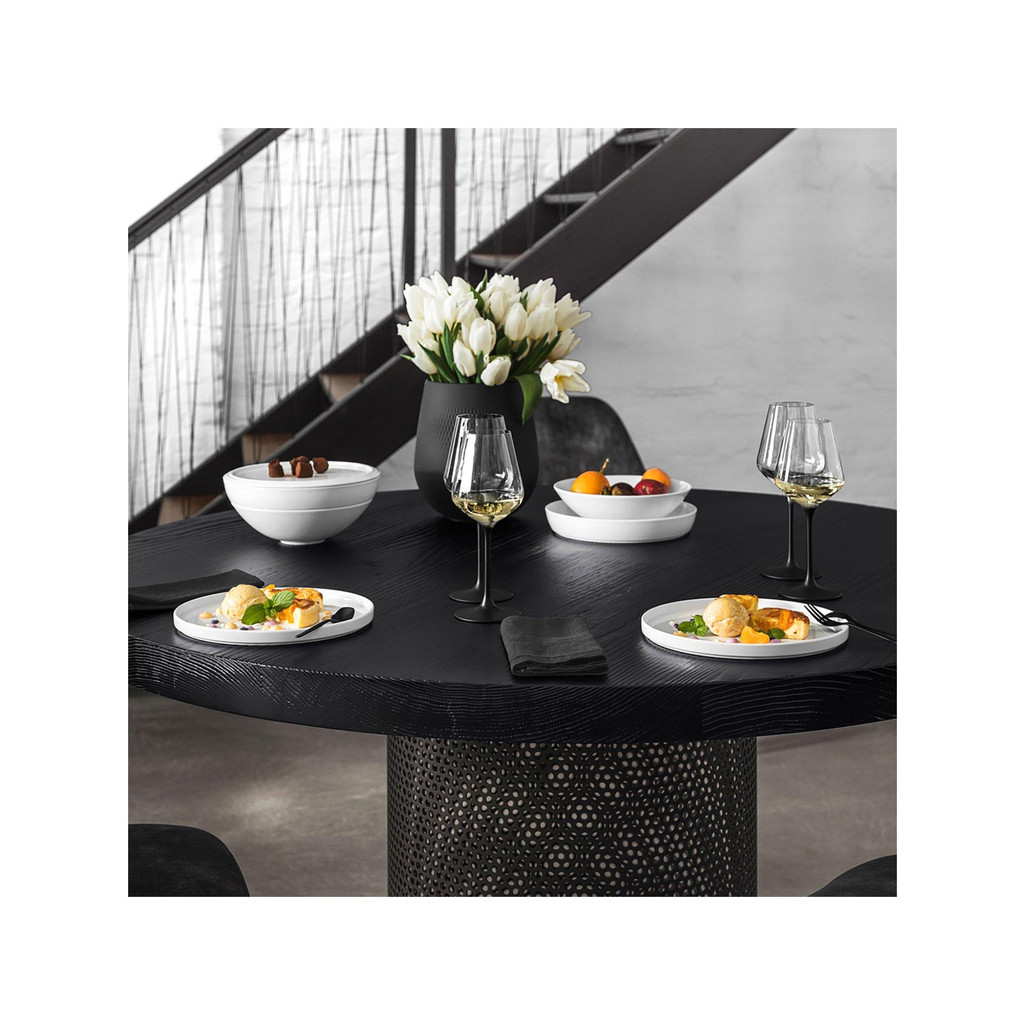 Funktionalität gepaart mit ikonischem Objektdesign sorgt dafür, dass jede La Boule nicht nur auf Ihrem Tisch zum Eyecatcher, sondern auch zu einem ganz besonderen Interior-Highlight wird. La Boule setzt sich zusammen aus je zwei Schüsseln, flachen Schalen und Universaltellern sowie einem Servierteller. Premium Porcelain. Spülmaschinen- und mikrowellenfest.