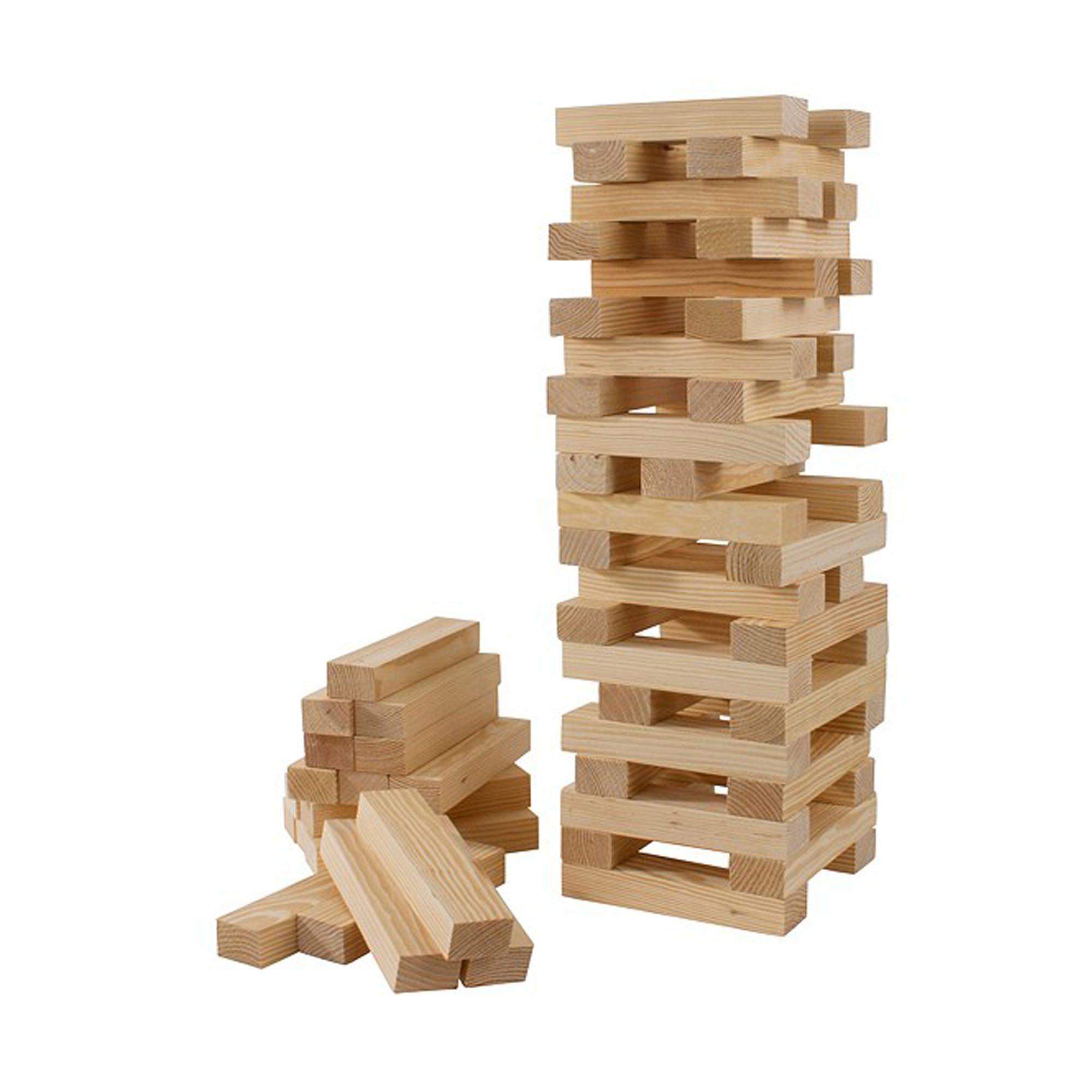 Der Outdoor Wackelturm ist ein Geschicklichkeits- und Konzentrationsspiel für 1 oder mehrere Spieler. 60 Steine aus Holz. Ziel des Spiels ist es abwechselnd Steine von unten herausziehen und oben auf den Turm legen, wer dabei den Turm zum Einsturz bringt hat verloren.