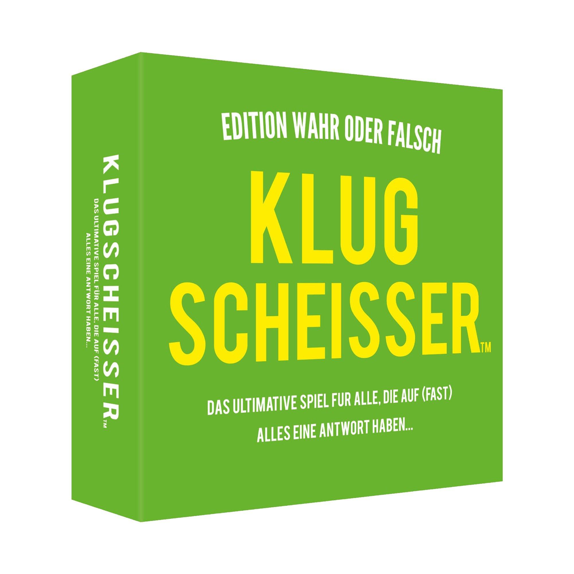 KLUGSCHEISSER – ”Wahr oder Falsch” ist ein mitreißendes und wirklich unter- haltsames Spiel mit mehr als 400 kuriosen, lustigen und kaum zu glaubenden Aussagen, die entweder wahr oder falsch sind. Die Frage ist: Erkennst Du den Unterschied? Ein echter KLUGSCHEISSER lässt sich nicht so leicht aufs Glatteis führen. Zeige auch Du, dass in Dir ein echter KLUGSCHEISSER steckt!