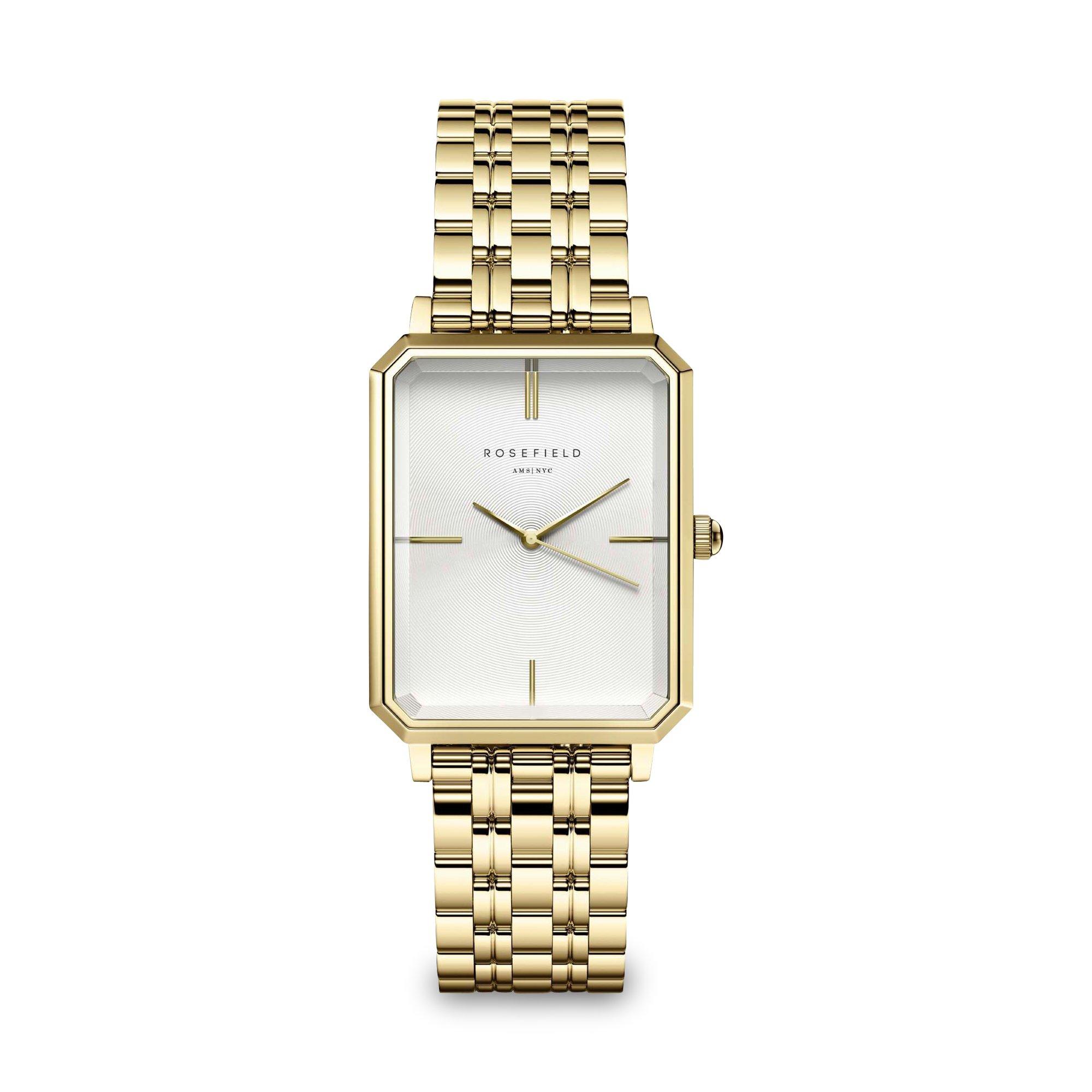 The Octagon, Rosefields neue moderne Uhrenkollektion und ein augenblicklicher Klassiker. Die seltene achteckige Form und das polierte 5-Glieder-Armband erinnern an die Eleganz der 1920er-Jahre und definieren die Uhr als Modeaccessoire neu.