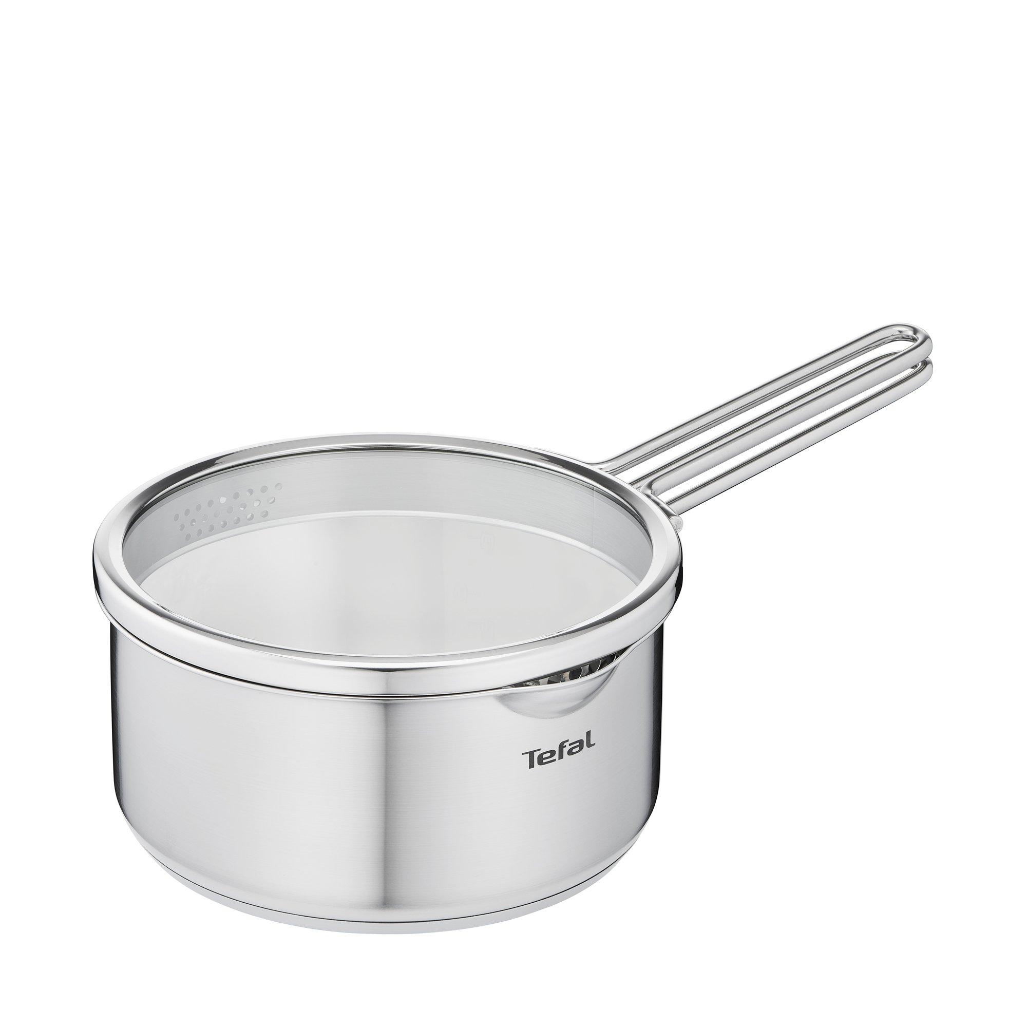 Mit dem Tefal Nordica Kochgeschirr bringen Sie minimalistische Linien und ein cleveres Design in Ihre Küche. Diese Premium-Stielkasserolle aus Edelstahl mit optimaler Wärmeverteilung eignet sich hervorragend für die Zubereitung leckerer Rezepte für die ganze Familie und überzeugt mit klassischer Ästhetik und ausgeklügeltem Design: patentierte Doppelgriffe, integrierte Ausgiesser und ein intelligenter Siebdeckel für das sichere und mühelose Abgiessen.