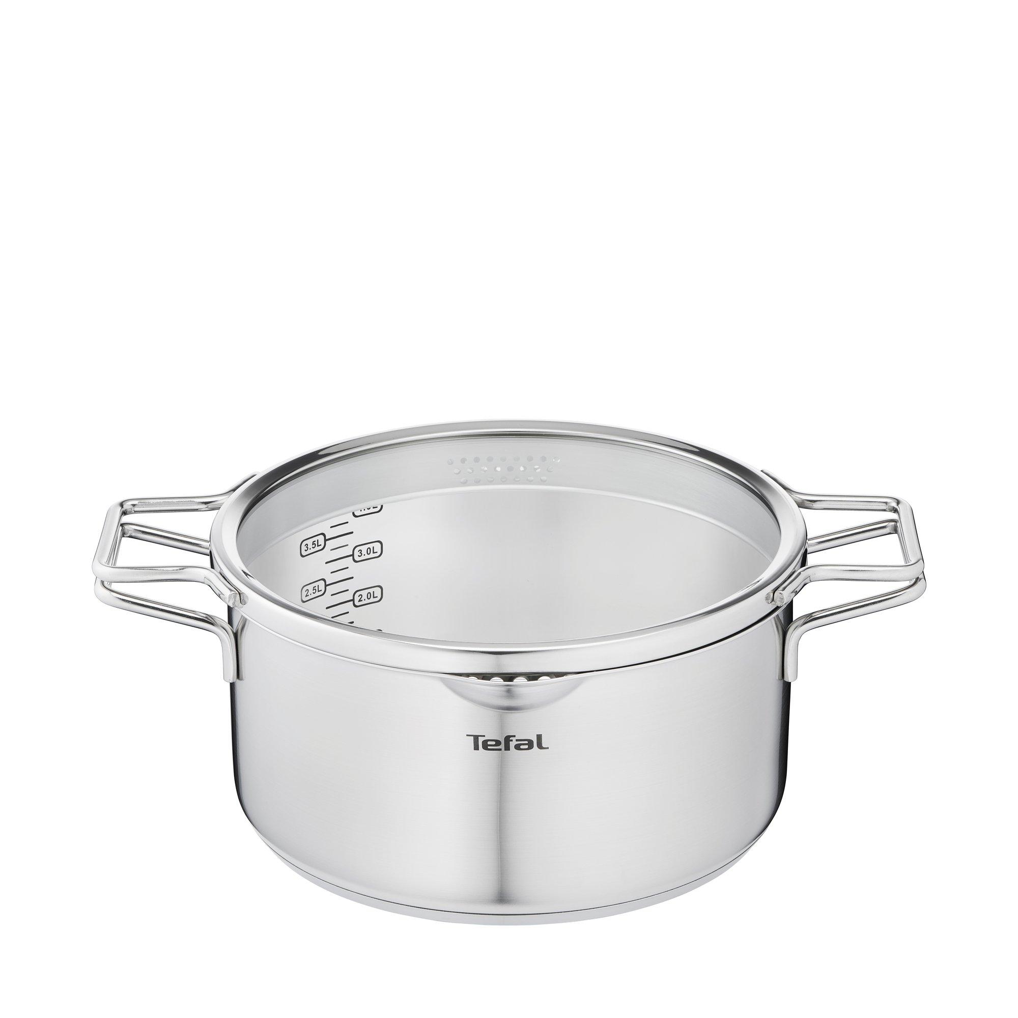 Mit dem Tefal Nordica Kochgeschirr bringen Sie minimalistische Linien und ein cleveres Design in Ihre Küche. Dieser Premium-Kochtopf aus Edelstahl mit optimaler Wärmeverteilung eignet sich hervorragend für die Zubereitung leckerer Rezepte für die ganze Familie und überzeugt mit klassischer Ästhetik und ausgeklügeltem Design: patentierte Doppelgriffe, integrierte Ausgiesser und ein intelligenter Siebdeckel für das sichere und mühelose Abgiessen.