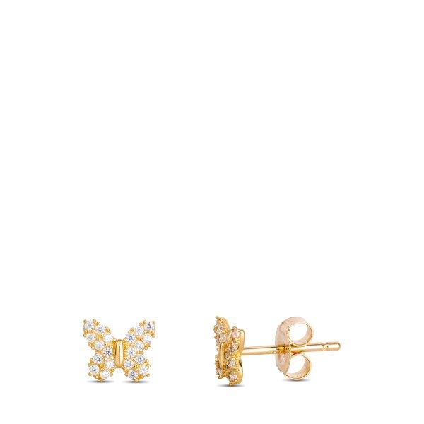 Die verspielten Ohrstecker der Marke L'Atelier Gold 18 Karat by Manor sind aus 18-karätigem Gelbgold gefertigt. Sie bestehen aus Schmetterlingen, welche mit funkelnden Zirkoniasteinen veredelt sind.