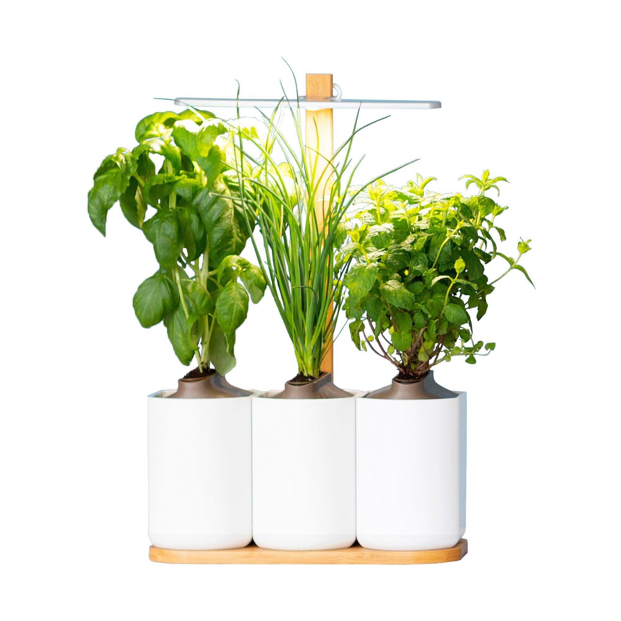 - • 3 Pflanzen-Kapseln inklusive: Basilikum, Minze & Schnittlauch