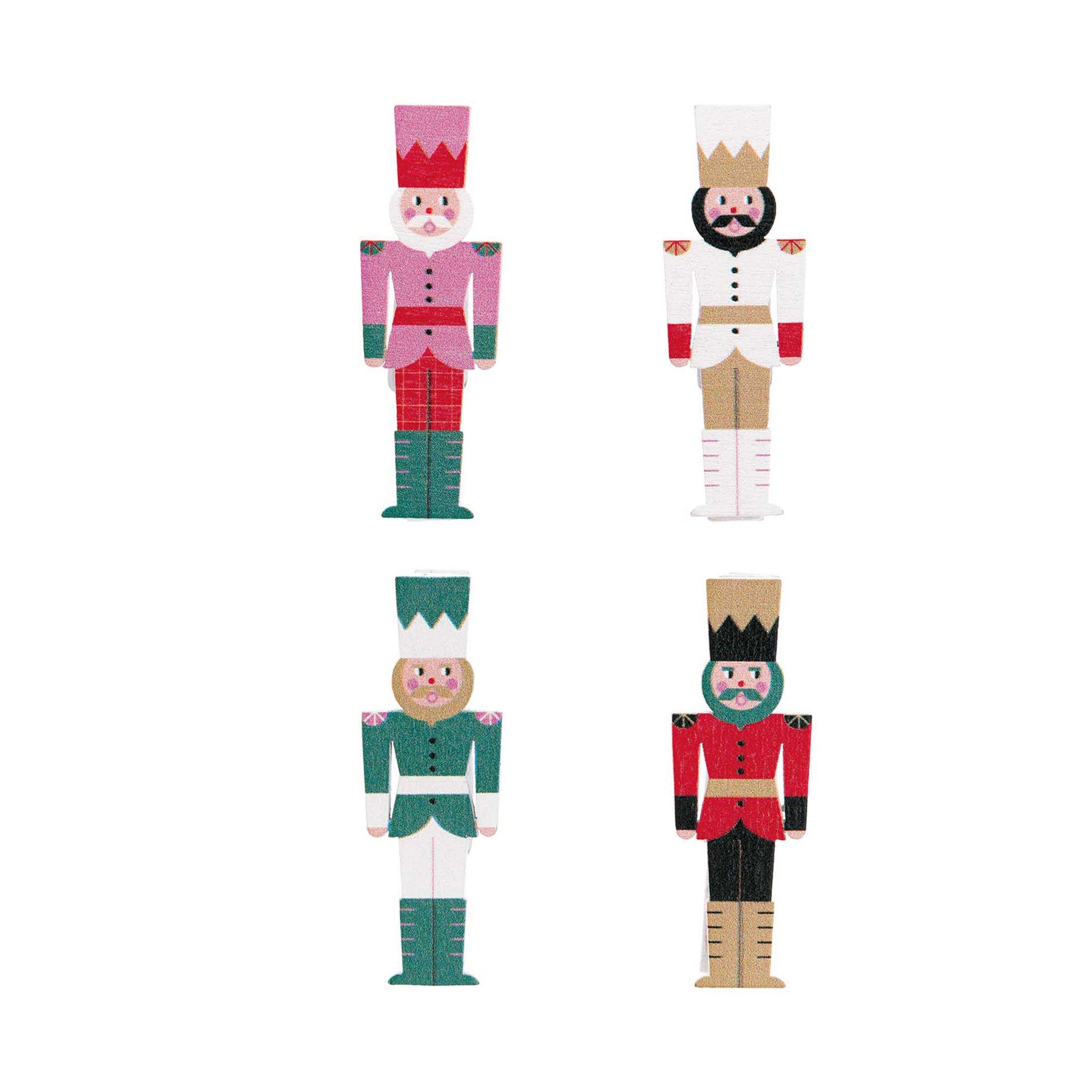 Mit den bunten Nussknacker Deko-Clips aus Holz können Sie ganz einfach und dekorativ Ihre Weihnachtskarte an das passende Geschenk befestigen oder Ihre Adventskalendertütchen aufhängen. Die vier unterschiedlich bunten Motive passen perfekt zu den Farben aus der Weihnachtswelt Christmas is in the air.