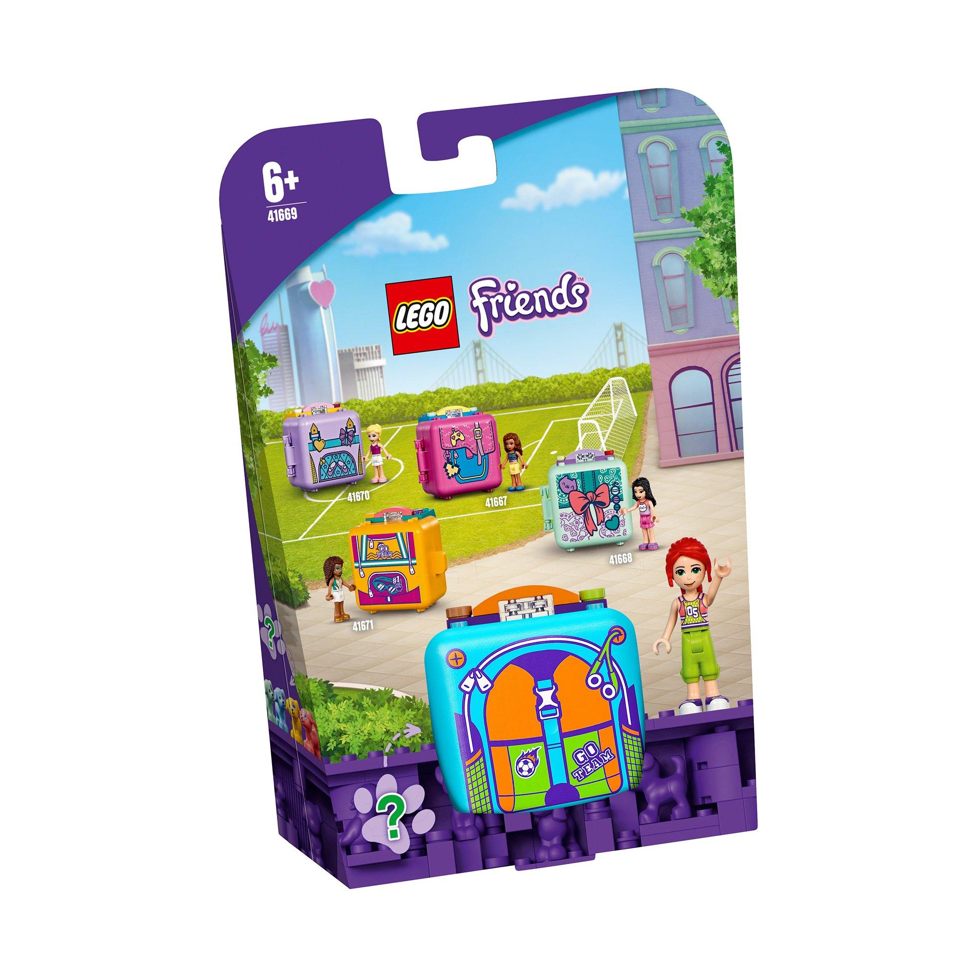 Begeistere einen kleinen Sportfan mit diesem coolen neuen Spielzeug. LEGO® Friends Mias Fußball-Würfel (41669) ist ein tolles kleines Geschenk für Kinder, die sich für Sport begeistern und gerne mit LEGO bauen.Witziges ReisespielzeugDer Würfel sieht aus wie eine Sporttasche und beinhaltet die Spielfigur Mia und einen Spielzeughund in einer von vier Überraschungsfarben. Auf einer Seite des Würfels befindet sich das Tor, auf der anderen die Umkleidekabine. Alle Teile kann man am Boden feststecken, damit auch unterwegs alles ordentlich aufgeräumt ist und nichts verloren geht. Das Spielzeug kann auch zu Freunden oder in die Schule mitgenommen werden.Kompakte ModelleDie Würfel sind eine tolle Einführung in die fröhliche Welt der LEGO Friends, in der kreative Kinder ihre Interessen entdecken können – zusammen mit einer Spielfigur, die ihnen sehr ähnlich ist. Diese Spielzeuge erfordern nur wenig Bauaufwand und sind ideale Sets für LEGO Einsteiger.