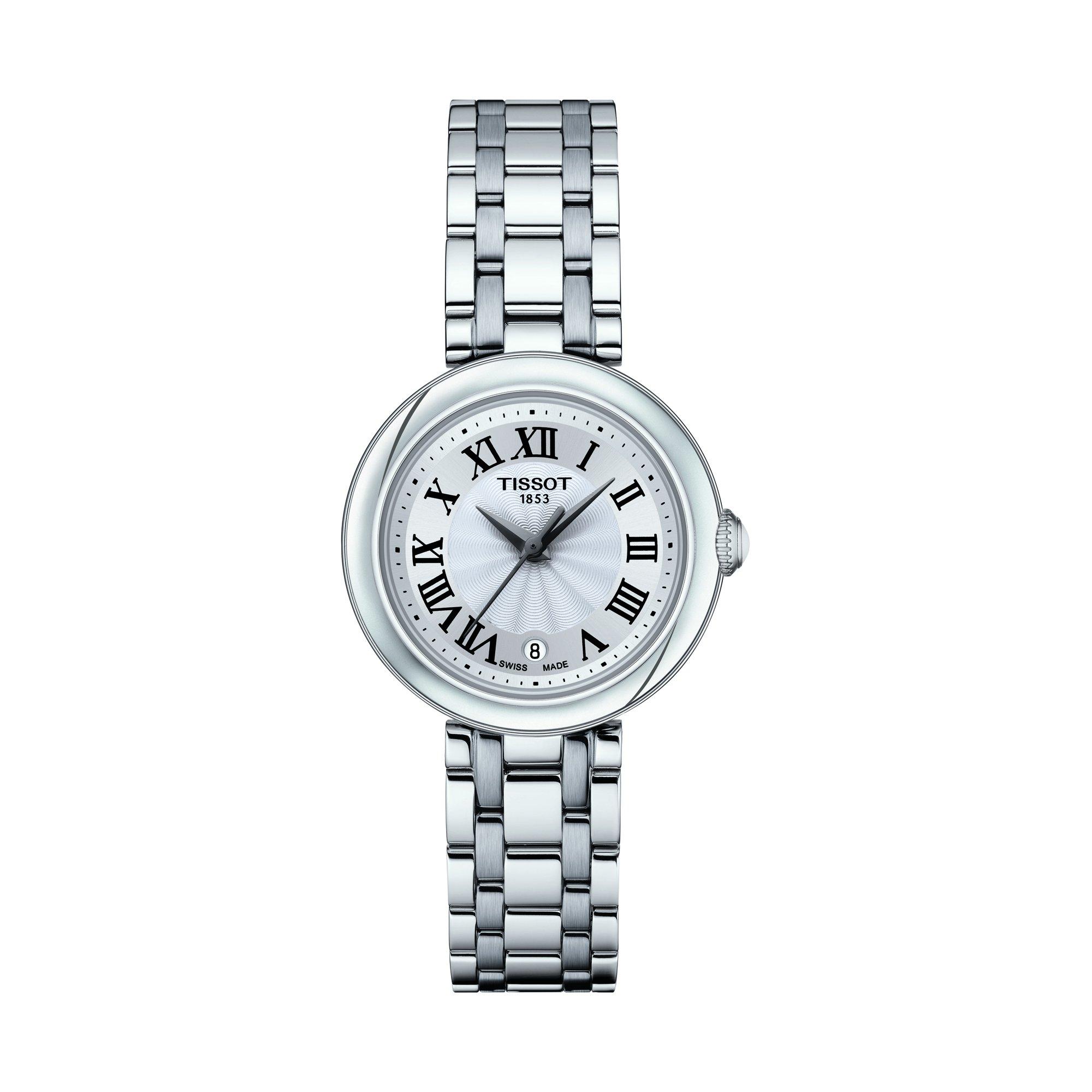 Die Tissot Bellissima Small Lady besticht durch ihr edles Design und schöne Details. Dieses Modell besitzt ein Swiss-Made Quartzwerk und ein kratzfestes Saphirglas mit römischen Ziffern und Datumsanzeige. Das 316L-Edelstahlgehäuse umschließt das weisse Zifferblatt und das 316L-Edelstahlarmband mit Butterflyschliesse mit Drückern.