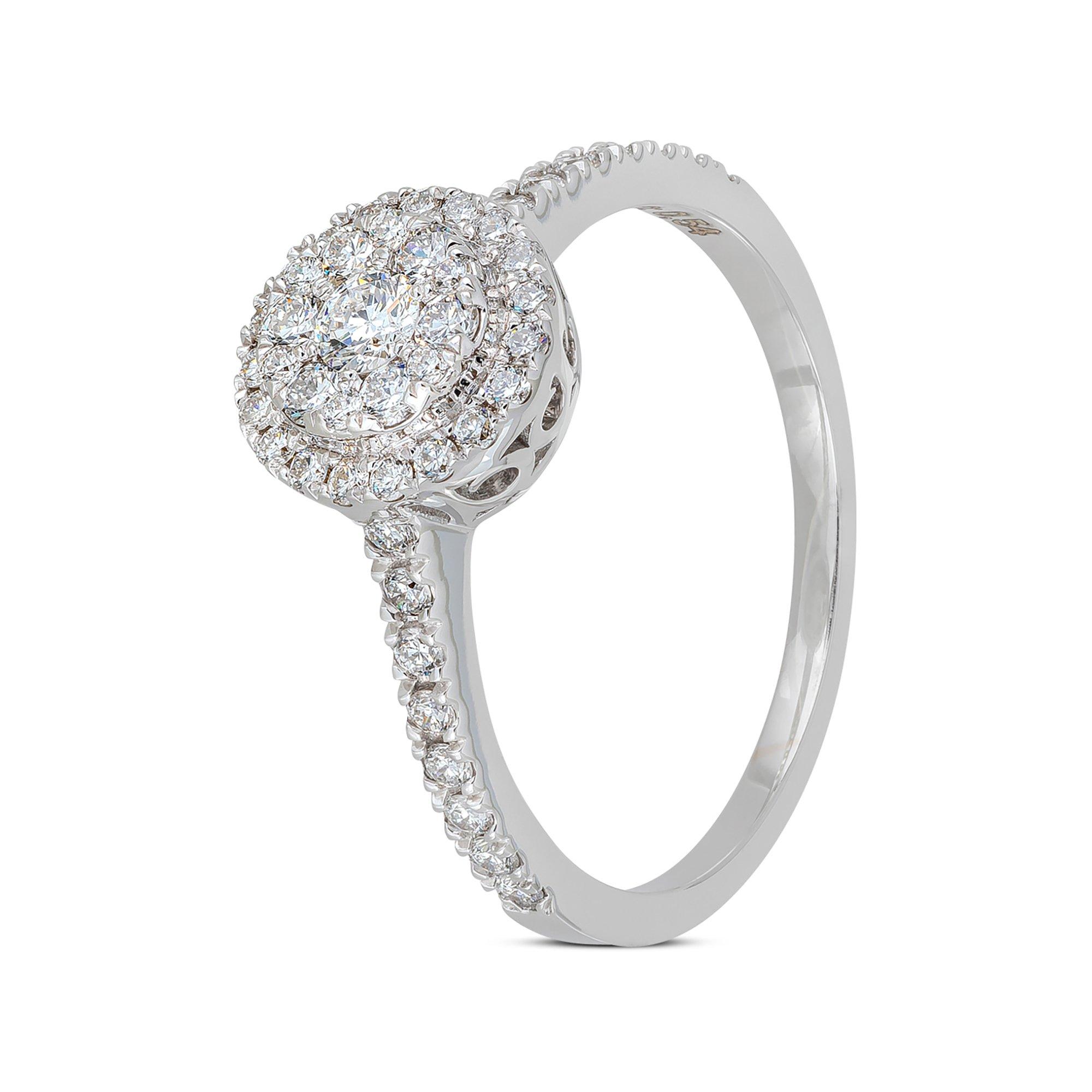 Dieser Ring der Marke Zen Diamond versprüht klassische Eleganz. Er ist aus hochwertigem Weissgold gefertigt und zentral mit funkelnden 0,54-karätigen Brillianten auf zwei Ebenen veredelt. Auf der Ringschiene werden diese von weiteren Brillianten unterstreichend ergänzt.