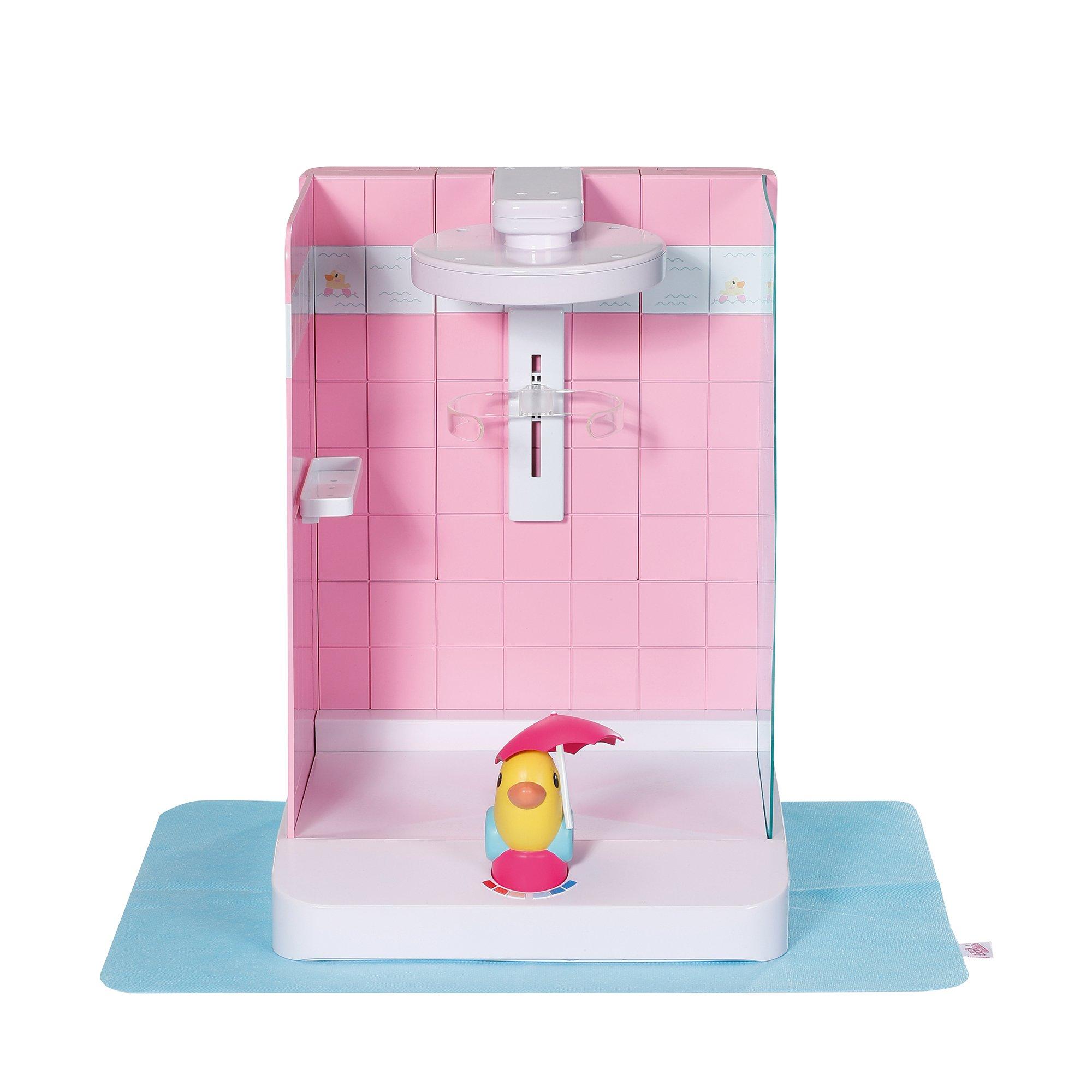 So ein Bad in der Wanne, mit ganz viel Schaum, hat schon echt was Entspannendes. Aber manchmal muss es einfach mal schnell gehen. Also ab unter die Dusche! Die Puppe wird im Clip befestigt und schon kann der Wasserspass losbrausen. Durch Drehen von Ente Berta wird die elektronische Pumpe in Gang gesetzt und echtes Wasser kommt aus dem Duschkopf. Warmduscher oder IceBaby? Die Enten-Mischbatterie zeigt die imaginäre Wassertemperatur an. Durch den höhenverstellbaren Duschkopf ist die Dusche auch für die Sisters und Brothers geeignet. Dank der blauen Spritzschutzmatte unter der Dusche kann zum Glück keine Überschwemmung entstehen.