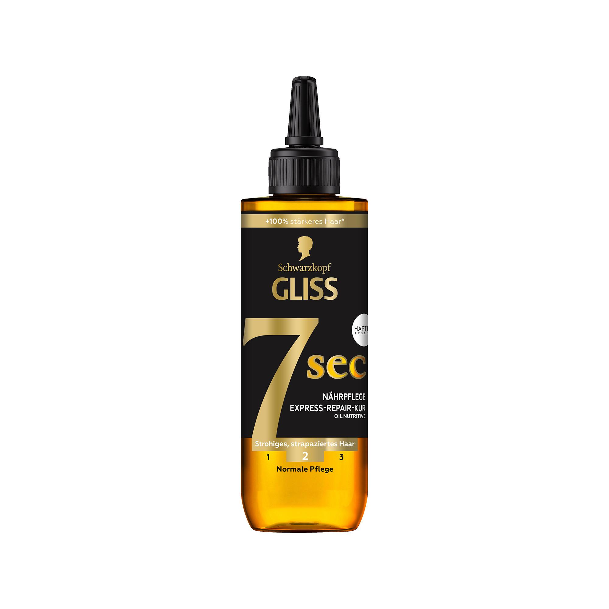 Gliss 7 Sec Express-Repair Kur Oil Nutritive repariert dein Haar in nur 7 Sekunden, effektiv wie eine 5-Minuten Kur, für glänzendes, repariertes Haar