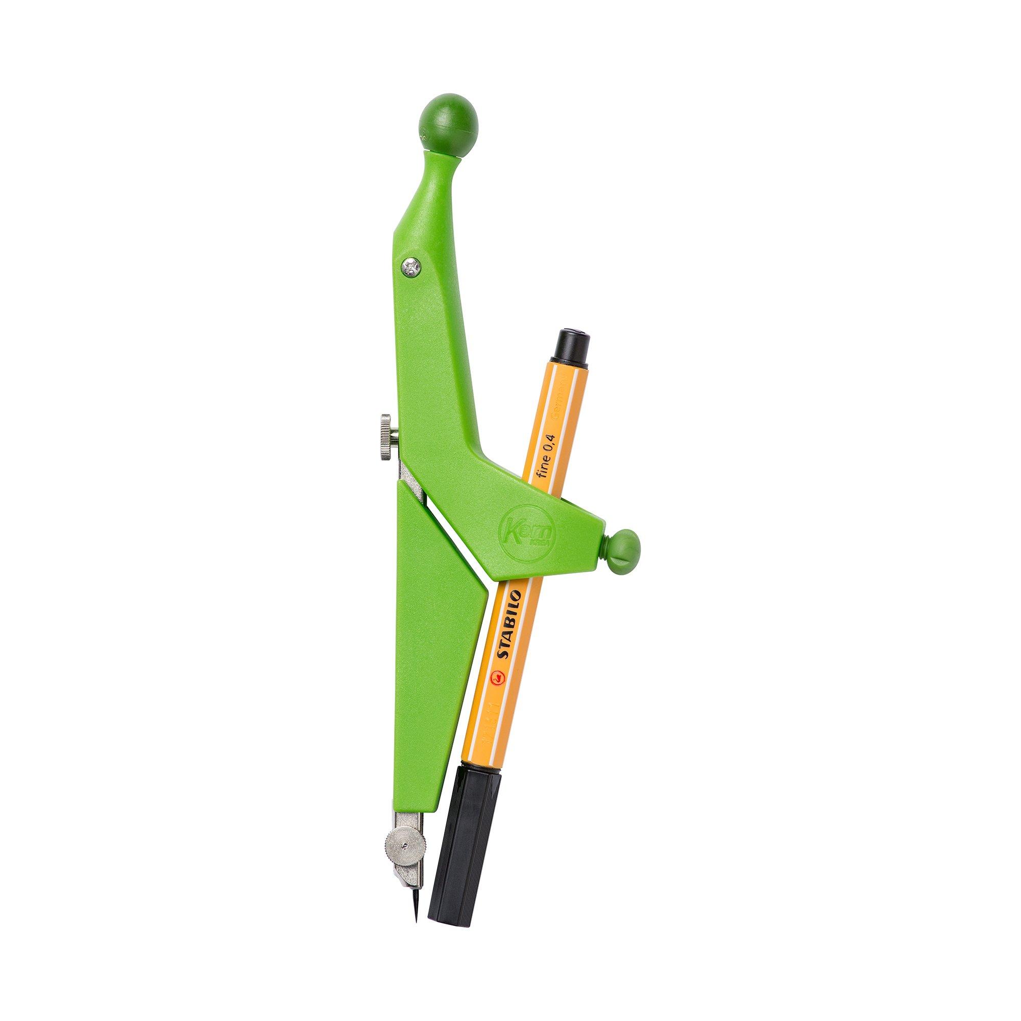 Kern Krea Zirkel - Der vielseitige Zirkel ist geeignet für alle Schreibgeräte bis 12 mm Durchmesser. Zirkelkopf aus beschichtetem Kunststoff für einen sicheren Halt und eine genaue Kreisführung mit Verlängerungsstange in trendigen Farben in transparentem robustem Etui inkl. einem STABILO point 88 Mini, schwarz. Für Kreise von maximum 420 mm(grün) respektive 500 mm (blau) Durchmesser.