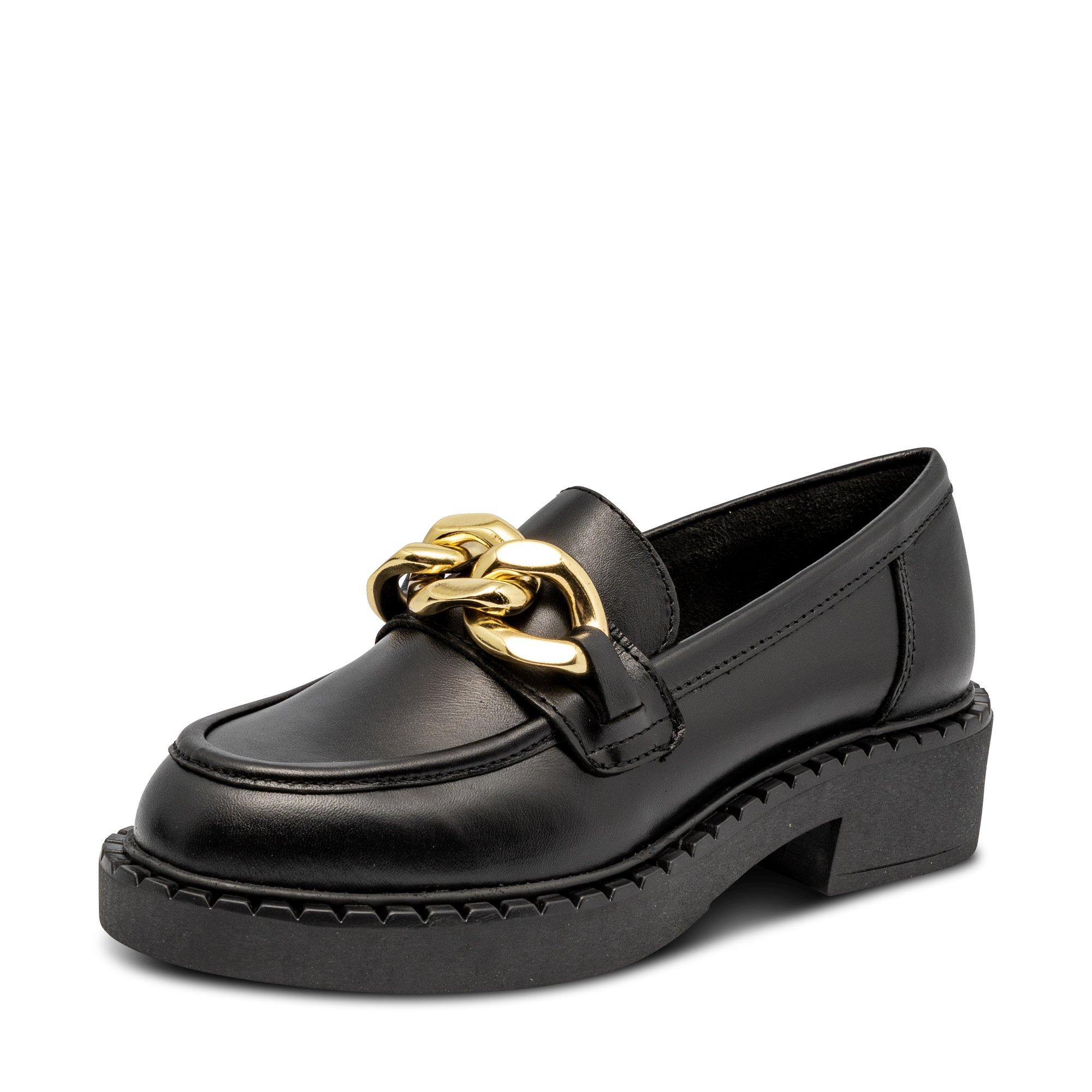 Elegant und doch lässig: Der Loafer von Manor Woman mit Obermaterial aus Leder, markanten Kettengliedern und der chunky Sohle.