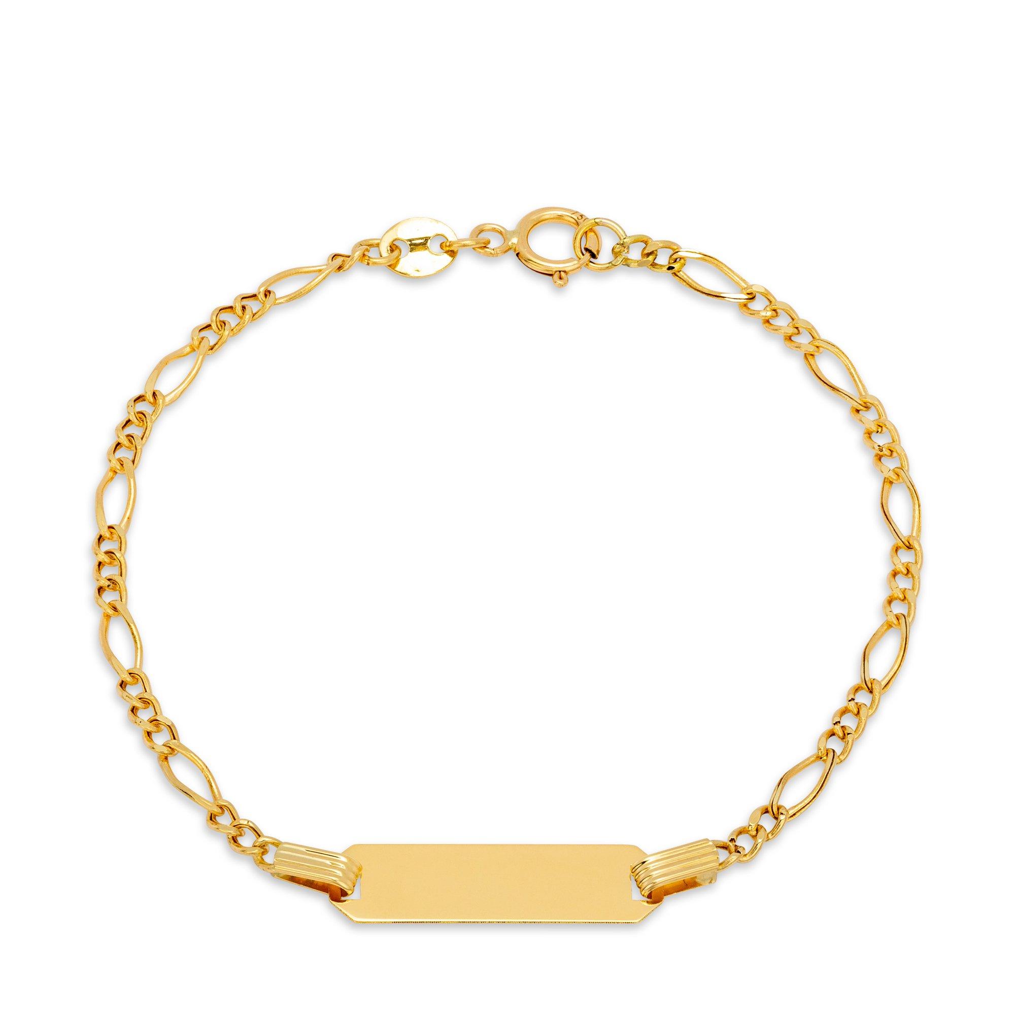 Ein wundervolles Armband von Caramel in Form einer Figarokette mit einem Gravurplättchen - um Ihren kleinen Liebling wilkommen zu heissen.