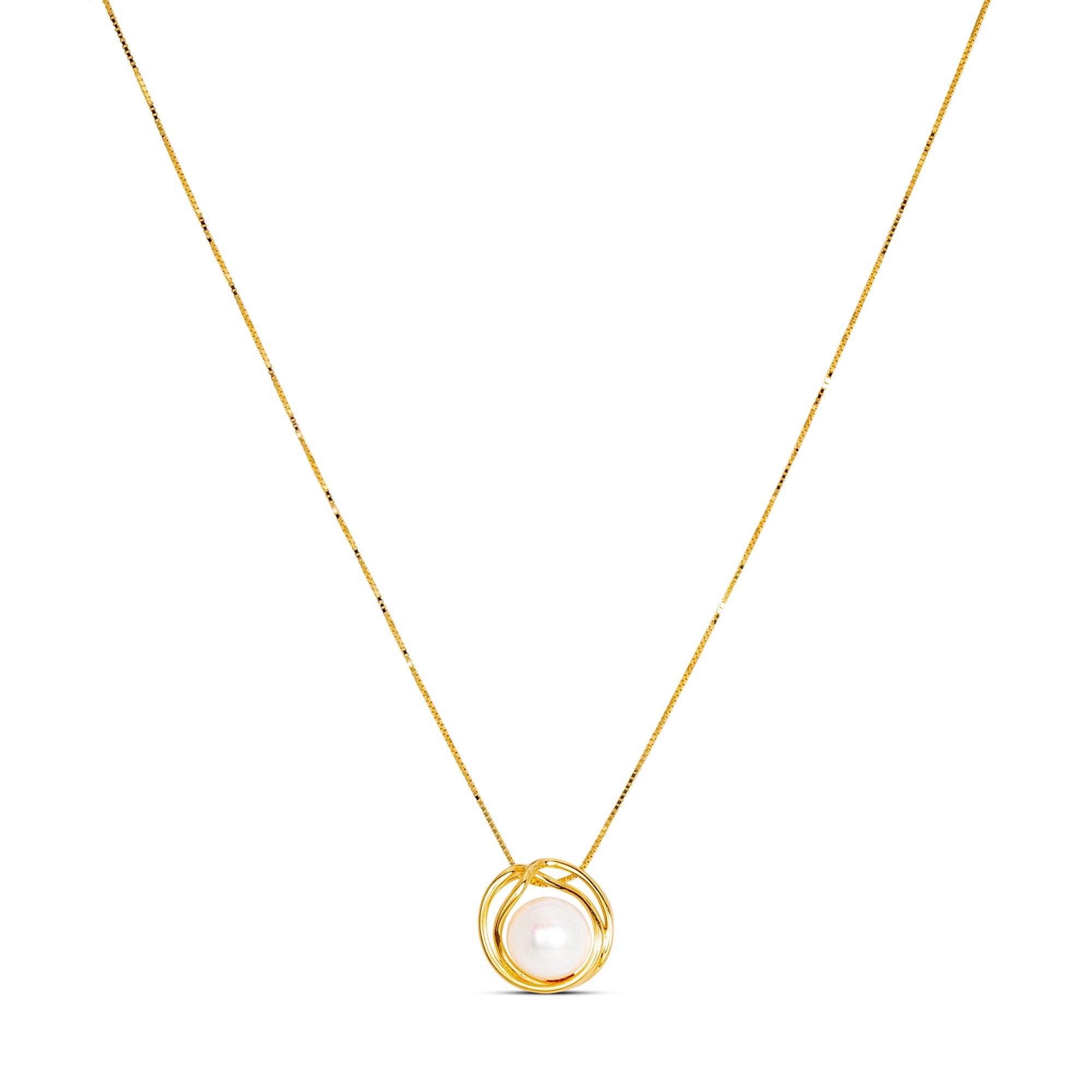 Die Schönheit des Meeres: Die wunderschöne Halskette aus luxuriösem 18 Karat Gold ist mit einer echten Süsswasserperle veredelt. Sie liegt in einer ringförmigen Fassung. Edel ziert Sie Ihren Hals und verleiht Ihnen einen persönlichen Charakter.