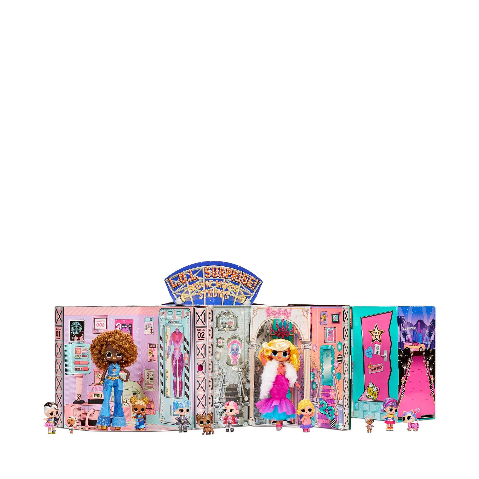 70+ Überraschungen, Das ultimatice Filmstudio von LOL Surprise mit 12 exklusiven Puppen. Verpackung lässt sich aufklappen und verwandelt sich in ein grosses Filmstudio mit Greenscreen und Kinosaal, 2 Fashion-Puppen (ca. 24 cm mit 9 Bewegungspunkten und 6 Sammelpüppchen (mit Wasserüberraschung und Outfits sowie Accessoires) Haar zum Stylen), 2 Pets und 2 Lil Sisters, Gratis App zum Download, um eigene LOL Surprise Filmszenen nachzudrehen, Inkl. 3D Brille