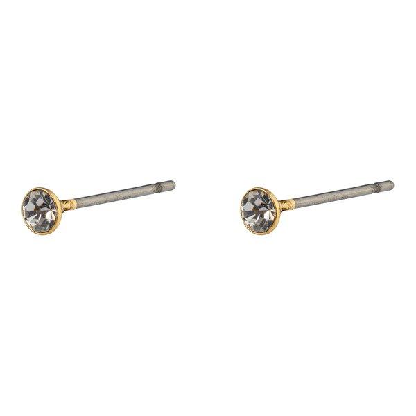 Ein Paar zierliche Kristallohrringe mit einem sehr einfachen und klassischen Look. Die Ohrringe sind 3 mm gross und eignen sich ideal für das Tragen in Piercings weiter oben im Ohr, in Kombination mit anderen Ohrringen. Sie sind auch in einem sehr schlichten Look wunderschön, bei dem sie wie ein kleiner Lichtblitz an Ihren Ohrläppchen funkeln. Der Preciosa-Kristall ist in einer vergoldeten Fassung gefasst, während der Stift, der durch das Ohr geht, aus Chirurgenstahl besteht.
