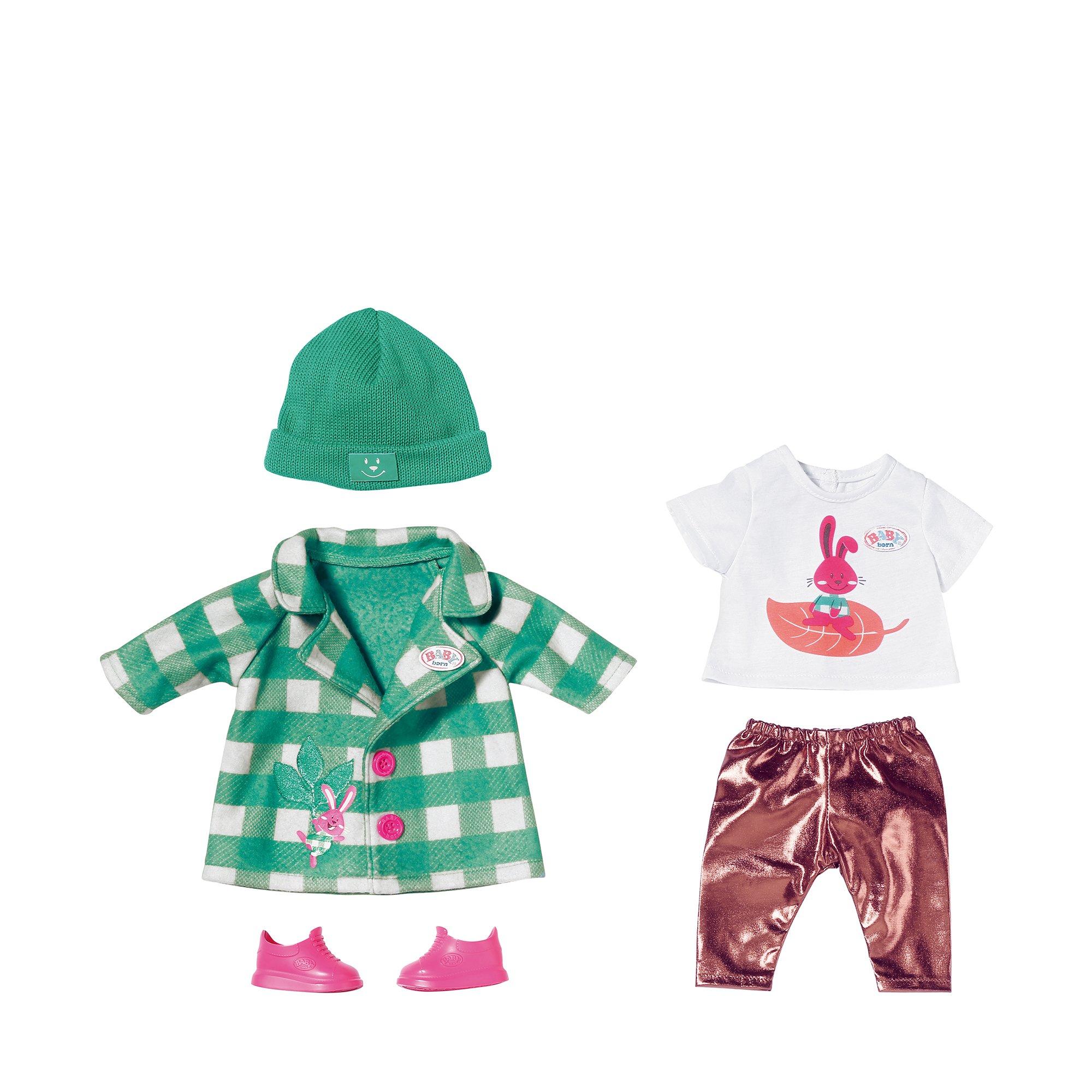 Dieser modische Herbstlook von Baby Born passt perfekt zu Spaziergängen durch die bunte Blätterpracht des Herbst. Beinhaltet schicken Mantel, coole Leggins, Mütze, Shirt und Sneakers.