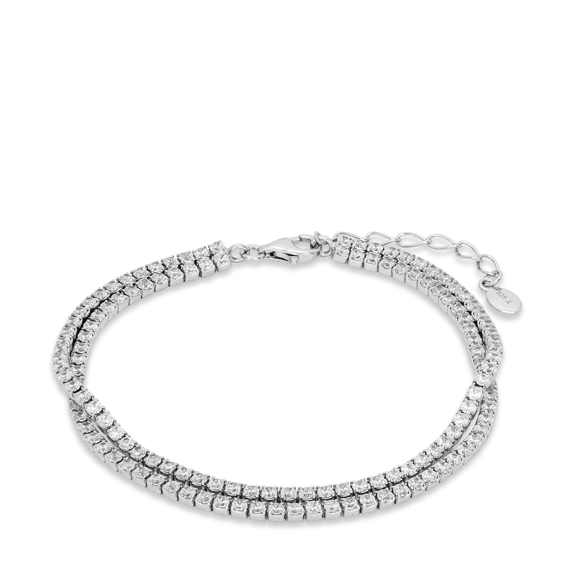 Dieses elegante Glieder-Armband der Marke L'Atelier Sterling Silver 925 hat einen zeitlosen Charakter. Es besteht aus zwei Gliedersträngen und ist aus funkelnden Zirkoniasteinen in Zargenfassung zusammengesetzt.